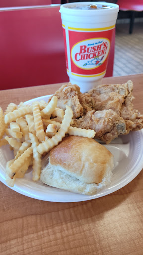 Now could be the fact that I have to drive 45 minutes to the yard with my order but the chicken and Bush's Chicken in Pecos Texas was probably the worst chicken I've ever had. Although the service is fast the guys taking the orders were pretty much kids and really had a bad attitude but then again what can you expect from kids pretty much fresh to the workforce and they have 0 customer service. The chicken wasn't crispy at all again I did travel 35 minutes to get to our hotel. The rolls were cold mind you I was eating these on the way home. The okra is probably the biggest disappointment. I'm not exactly sure what was going on but the okra was soggy and tasted much like bleach or disinfectant. The gizzards are actually pretty good but I believe it's because they were made fresh. When I asked the guy taking my order seemed upset at the fact that I was even ordering the gizzards. Swee tea was also oK I got a gallon of that. I definitely would not recommend getting Bush's Chicken but then again who am I to tell people to get their own food all I know is the experience I had there was terrible. That being said though I would go back and try one more time just to give them a second go. Until then one star for the gizzards and they're lucky to...