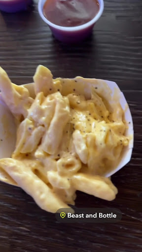 Read moreBeast burger is amazing, definitely one of the better burgers I've ever had! Fries were good, cooked well just not my particular cup of tea and the reasoning is when you're enjoying a burger of this magnitude of taste you don't want your experience of eating fries to feel like reaching into a bag of chips to gather the smaller ones to dip. That's kind of what you get with their fries. They were good. Cooked well and did the job, just not the type I'd have with this type of burger. You got a bombing burger with more crispier steak n shake fries. This is my personal taste no shade at the restaurant. The fried pickles were good, the ranch was a tad sweeter than I expected but got the job done. Not a home run, I've seen better (ranch) but again no shade to the establishment it was good and I finished my meal and felt full so props to the owners of beast n bottle. Now is this an establishment I'd eat everyday? If I lived in the area more than likely. The table cloth had some dried out sauce on it. Better idea for atmosphere: interchangeable plastic cloths. Other than that cozy atmosphere friendly staff. We didn't check out the bar but the area looked nice.