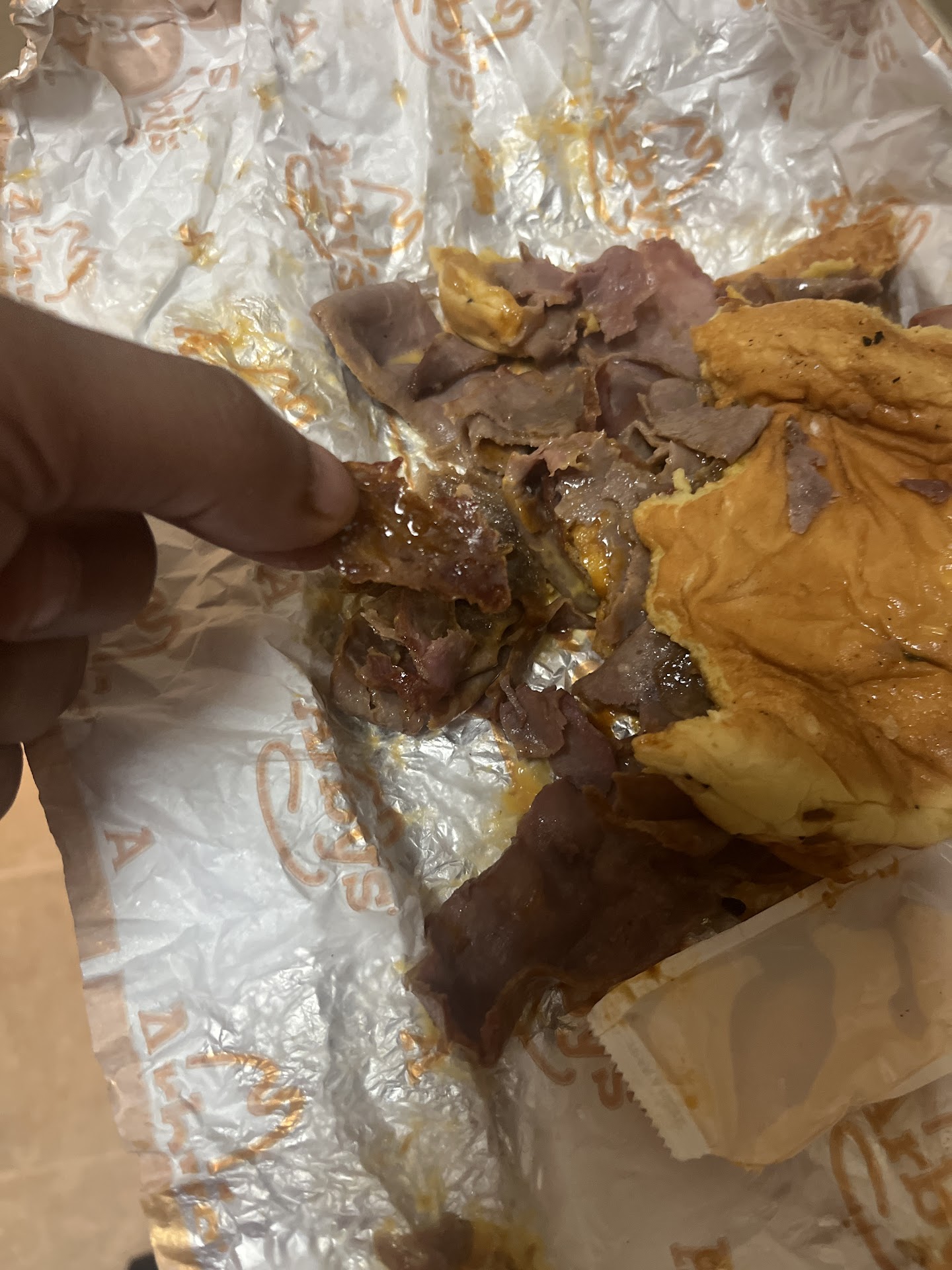 Went to this Arby's about 11 am today... Got a Big Roast Beef and Curly Fry same thing I always get from every Arby's in this area and when Traveling and it was absolutely disgusting... It was dry hard and crispy as you will see in pic and it had dry nasty crusty sauce on the inside top of box. It didn't have sauce on sandwich it was like they pulled the sandwich container out of the trash... When we called to complain the lady said she would replace it but it was going to be the exact same way bc that's how they cook it... I call absolute BS on that bc I eat Arby's 4 to 6 times a week and always get the same sandwich... I have NEVER got a sandwich that looks like this one... Maybe it's time for the manager to be replaced or retrained... It is going to be a minute before I return to Arby's bc the look and thought of this sandwich was DISGUSTING... My neighbor's dog wouldn't even eat it and he eats anything... Tried feeding it to him and it's still on...