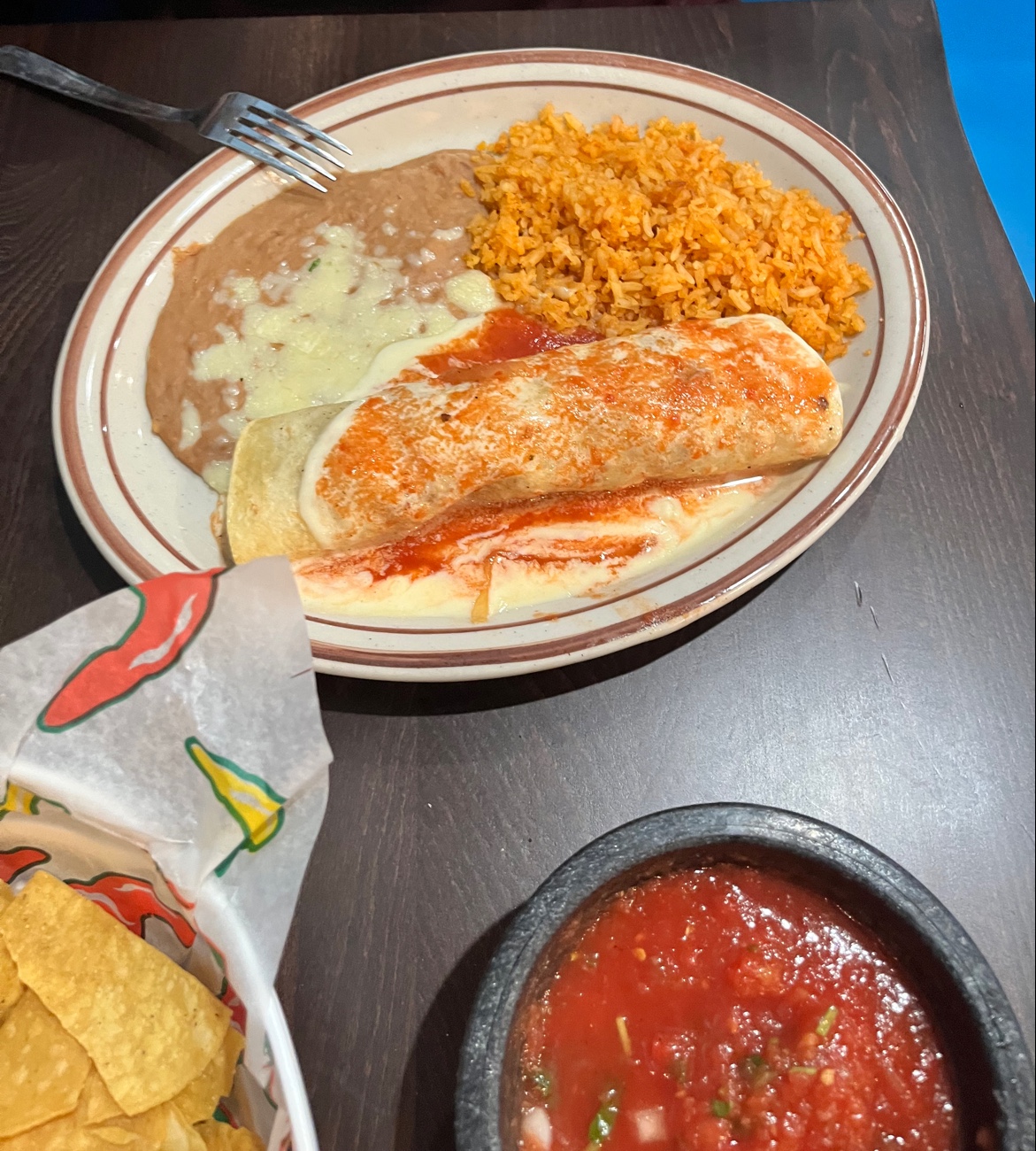 Read moreThis place was fantastic! I don't care for Mexican usually but this was new to town so my wife and I wanted to try it. This was around lunch so it was pretty busy. Service was great! Our waitress (I wish I could remember her name) was very kind, mad sure a couple times that everything was okay and came around for refills when needed (you don't need a refill of your glass is still half full) which was only like once and once was all we ever needed. We don't care for salsa so we first asked for cheese dip. To the person that complained the large was $9, it says the large is that much on the menu. My wife got a quesadilla which for a simpler Mexican dish she said was delish and was pretty big. I tried a little bit of the chicken from it and I definitely agree. I ordered two steak and onion burritos which came with rice and beans but I ask to substitute the beans for something else and they kindly let me do fries. The only minor hiccup was I did not get my fries at first, but our waitress when we asked, made sure to get it asap and it came out shortly after and she even brought ketchup for them without me even having to ask. I don't care for rice, but it was actually pretty good with a little hot sauce. I am still iffy about onions in things as I'm a little picky, especially if they are a bit crunchy and underdone. But the taste overall was so delicious that it distracted from the onions being a bit crunchy and I found myself eating them by themselves. And the fries were curly, sweet! Again, I am not a big Mexican food fan so if I say it is good, it speaks volumes....