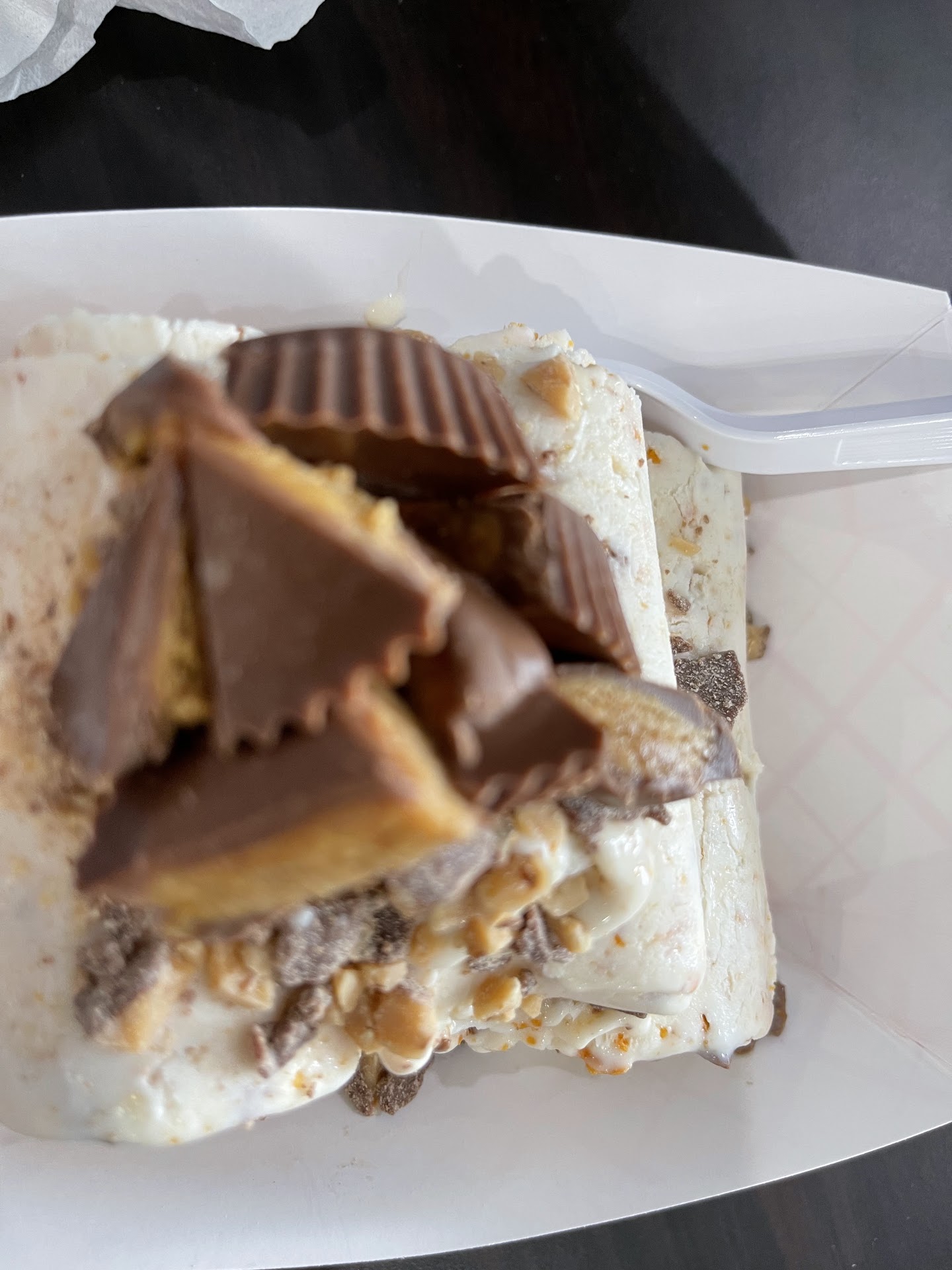 Read moreVery creamy and absolutely delightful! So many choices-I took my daughter & 2 grandkids & my dad so he could pay! 3 of us got rolled ice cream & 2 got cups. (1 of the photos I took after partially eaten because it looked so good I almost forgot to take pic) The ice cream was delicious. We could have split the rolled ice cream because they are HUGE! For the rolled ice cream, choose a base (they do have a lactose-free option) and then you choose a recipe of which there are many, then 2 toppings. They also have milkshakes, sundaes and scoops with cones or in cups. We stayed for 2 hours while we sat around and ate, shared and talked. It was a great place to sit & visit while eating! I didnât think to ask the girlâs name that was working - she may be owner, not sure but she was over the top nice, patient & helpful; very sweet like...