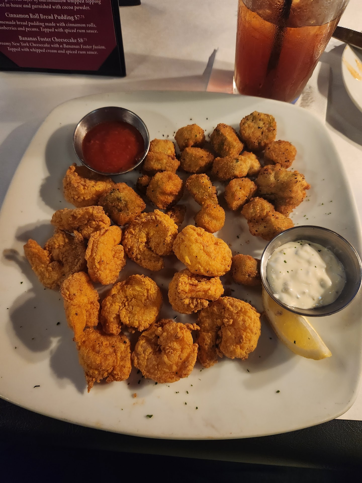 Read moreFirst and last time to visit. I'll start with the positives. Atmosphere was great, service was good, drinks were amazing and that's where it ends. I'm not sure how they have reviews above a 4. We began with fried green tomatoes and crab cakes. Tomatoes were almost non-existent beneath the thick over cooked batter. The small crab cakes I believe were either imitation or very poor crab meat, no lump at all. Cakes were slightly fishy as well and good crab is typically sweet. The sauce however was very tangy and I assume came from a bag they cut open and warm up. My wife ordered the encrusted mahi with crab not knowing at the time the crab was disgusting. Her sweet potatoes were ok and we both had fried okra...a southern staple. Okra was frozen which is ok in the winter but it wasn't seasoned at all. I had the stuffed portobellos and you guessed it, with crab! Mushrooms actually had an ok flavor and again a good sauce over them. So we spent $123 which includes a tip which we don't mind spending on good food. We waited 45 minutes for a table which is fine if the food is worth it, which it wasn't. So disappointing but so much potential. Great concept but very poor execution. I can't believe in this day and age that the owners and management actually believe that food is good and worth what they charge for it. Honestly Captain D's is better on a good day! I hope the management takes this to heart and that they look at their food quality and maybe consider a professional chef or cooks. Also the sweet potatoes were advertised as creme brulee sweet potatoes..... There was no...