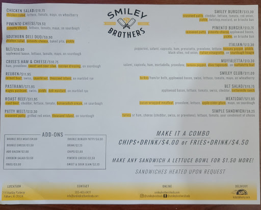 Read moreI stepped into Smiley Brothers on a Saturday around lunch time. The place was immaculately clean. Very well organized with several features. Large wine collection, Dry Aged Steak dehumidifier, a large cheese collection, attentive and friendly staff, and several offerings of proprietary food products. I ordered two club sandwiches, pasta salad, and beef fat fries. All of which were absolutely incredible. I recommend ordering them hot. In addition I got 4LBS of beef brisket, 1LB of English Bacon, and 4 burger patties seasoned. The butcher brought out the meat asked me how I’d like them cut, let me select what part of the brisket I wanted, and gave me some tips for smoking it. My only critique is it wasn’t completely clear what other options I had. Stuffed chicken, steak, etc. In fact it was a little hard to navigate the meat section without some help and it could be a little intimidating for someone who is just getting their feet wet with dialing in their smoking and grilling ability. Overall, this place gets 5 stars. I’ll be back for a cooler pack which has incredible value. More to...