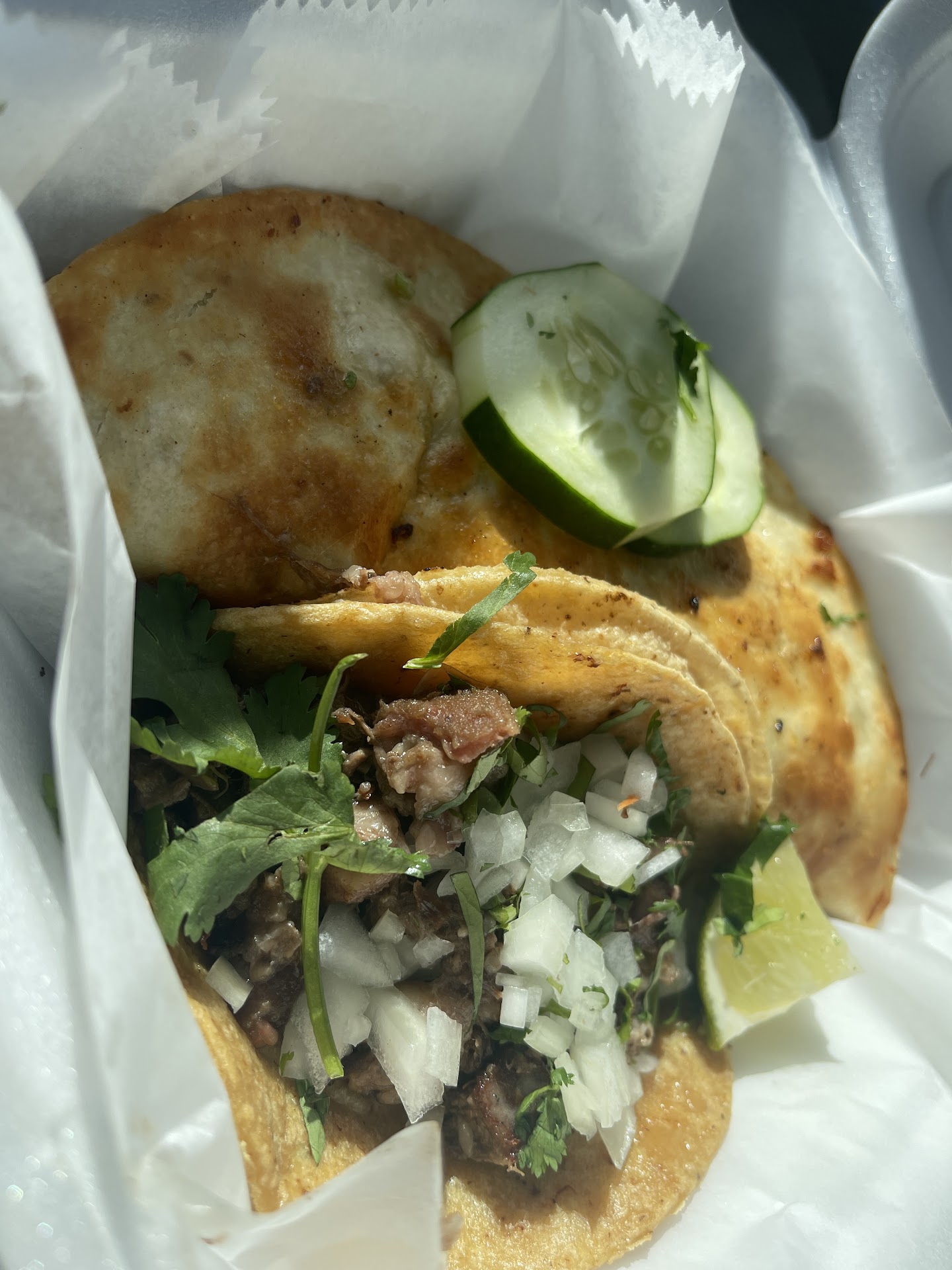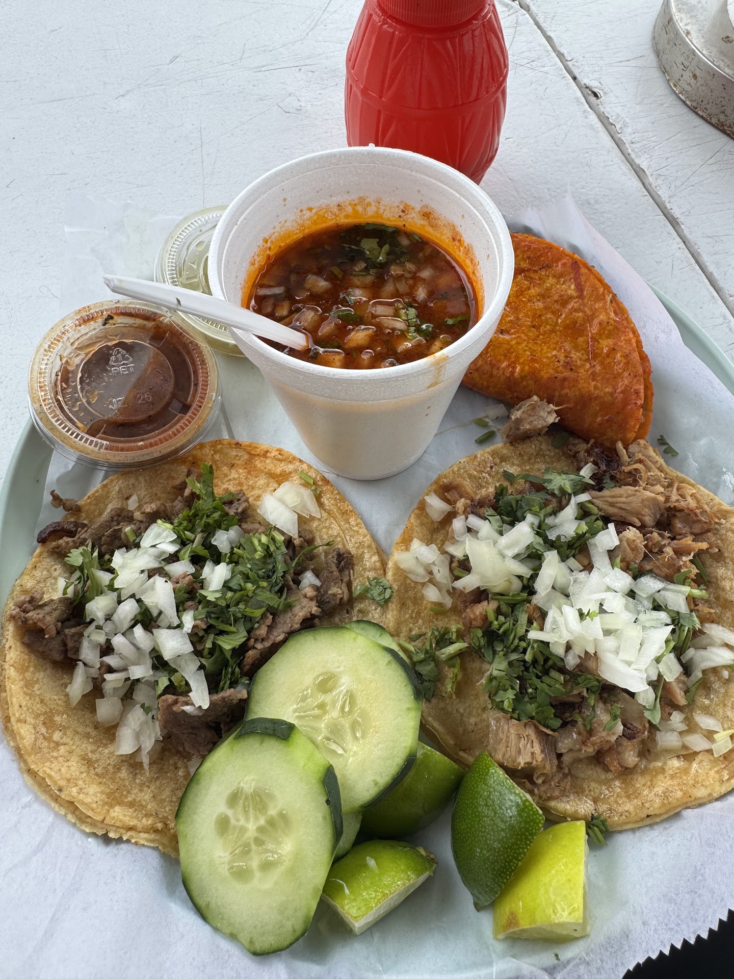I got 2 chorizo tacos & she got Birria tacos & Sumn else she had alrdy scarfed down b4 I arrived back to the house lmao all for...