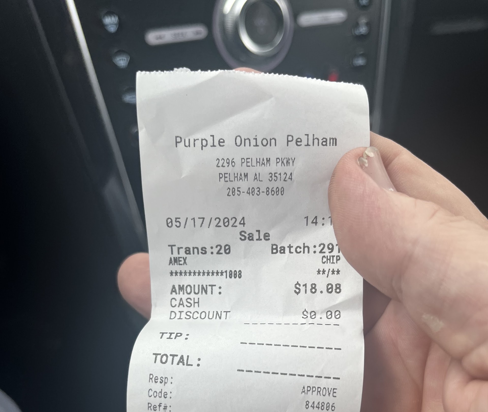 Read moreVery disappointed in The Purple Onion in Pelham. Have eaten at the Homewood and Hoover locations several times and enjoyed it. I ordered the gyro plate. My wife ordered the greek salad and a grilled cheese. My gyro came with fries. The pita bread the gyro was made from was really good. The meat was perfectly cooked. Unfortunately, that was about it. The lettuce was cheap shredded iceberg lettuce, some slightly brown. The tomatoes were grainy and not fully ripe. To top it off, instead of the traditional tzaziki sauce, it had something approaching thousand island dressing. At least the fries were well cooked and nicely spiced. My wife's salad was full of brown lettuce, four cores, gritty half ripe tomatoes, and thickly sliced onions. The salad dressing was an Italian vinagrette rather than a greek dressing. Her grilled cheese was nicely cooked, but thin on cheese. I haven't even mention the run down dirty building or the filthy stinking bathroom. Don't think I need to go into detail. We will...