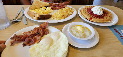 Read moreI would say I come to huddle house semi often, once every month or two. This has got to be the worst food Ive ever gotten here out of any time I've ever come. The cook who made our food was vaping on the floor, the other servers were vaping, everyone was vaping except for our server. I ordered the MVP breakfast with fries instead of hash browns and scrambled eggs, here is everything wrong with each part of my meal: the eggs our cook scrambled our eggs, put them onto the burner, and did not scramble or move them at all until the bottom was scorched. the result was a "scrambled" egg with a runny topside and a burned bottom side. the sausage me and my fiance's sausage was incredibly burnt to the part it was hard to rip off, terrible overall. the pancakes the pancakes are the only part of my meal that wasn't terrible the biscuit they made my biscuit wrong, I ordered no gravy, and that's fine I know accidents happen. however the next biscuit I received was cold, not only that but the cook who made it rolled his eyes when my server took the food back, grabbed a biscuit out the drawer, put it in the microwave for exactly 4 seconds, put it in a bowl hastily and shoved it in my servers direction before walking out to smoke. my server, I didn't catch her name, was the only person on the floor who wasn't vaping and she did a good job serving, I wish the rest of these guys weren't nicotine addicted and didn't care...