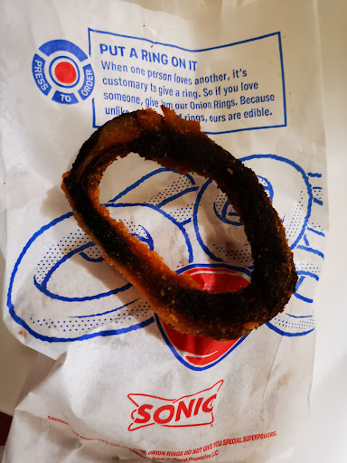Breakfast burrito was assembled by someone who's never seen a burrito. The sign saying the slush machine was old and faded so apparently isn't going to be fixed. Waitress was friendly and the only reason I didn't give just one star. I rarely go to Sonic at all but I will avoid this one in the future. This is definitely a management problem and the kind of place that won't worry about washing hands or cleaning up properly. And all this from one of the highest priced places in the area. My belly is already telling me I'm going to be regretting this decision for the rest of the day.