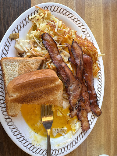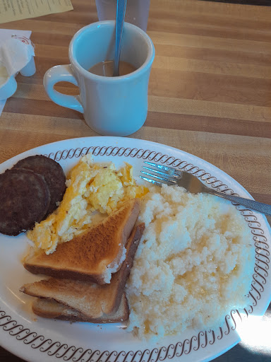 Instead of breakfast i chose the dbl paddymelt with onions and hashbrowns with cheese. Hashbrowns were great as usual, but the paddymelt was dry due to beef patties being so overcooked. My wife had ham, egg and cheese on toast, eggs cooked well and hashbrowns in the ring. Hashbrowns were great, but her sandwich was very dry as well. We eat at waffle house (leeds, al) approx 5 times a week and will continue to do so, but grill master at this location (pell city) needs to work on making juicier sandwiches. Waiter did a great job, no issues there at all. UPDATE 10/28/23 Waffle House Pell City was busy on arrival but we were quickly seated at the bar and Q (OUTSTANDING waitress) took our order immediately. (She is working the Pell City location due to Leeds location being remodeled) Food was delivered relatively quick, however my cheese eggs were cold, hash browns were warm, but way overcooked, and sausage patties were overcooked on one side and cold on the opposite side. When we went to check out, we noticed the grill cook had 8 plates, 5 with eggs sitting waiting for sides and pickup. They were pre cooking multiple pieces of bacon and sausage, as well as toast. Not impressed at all with anything from the Pell City location other than our waitress. Pre cooking meats and toast should not be allowed since it will be cold once customers receive plates. Can't wait til the Leeds...