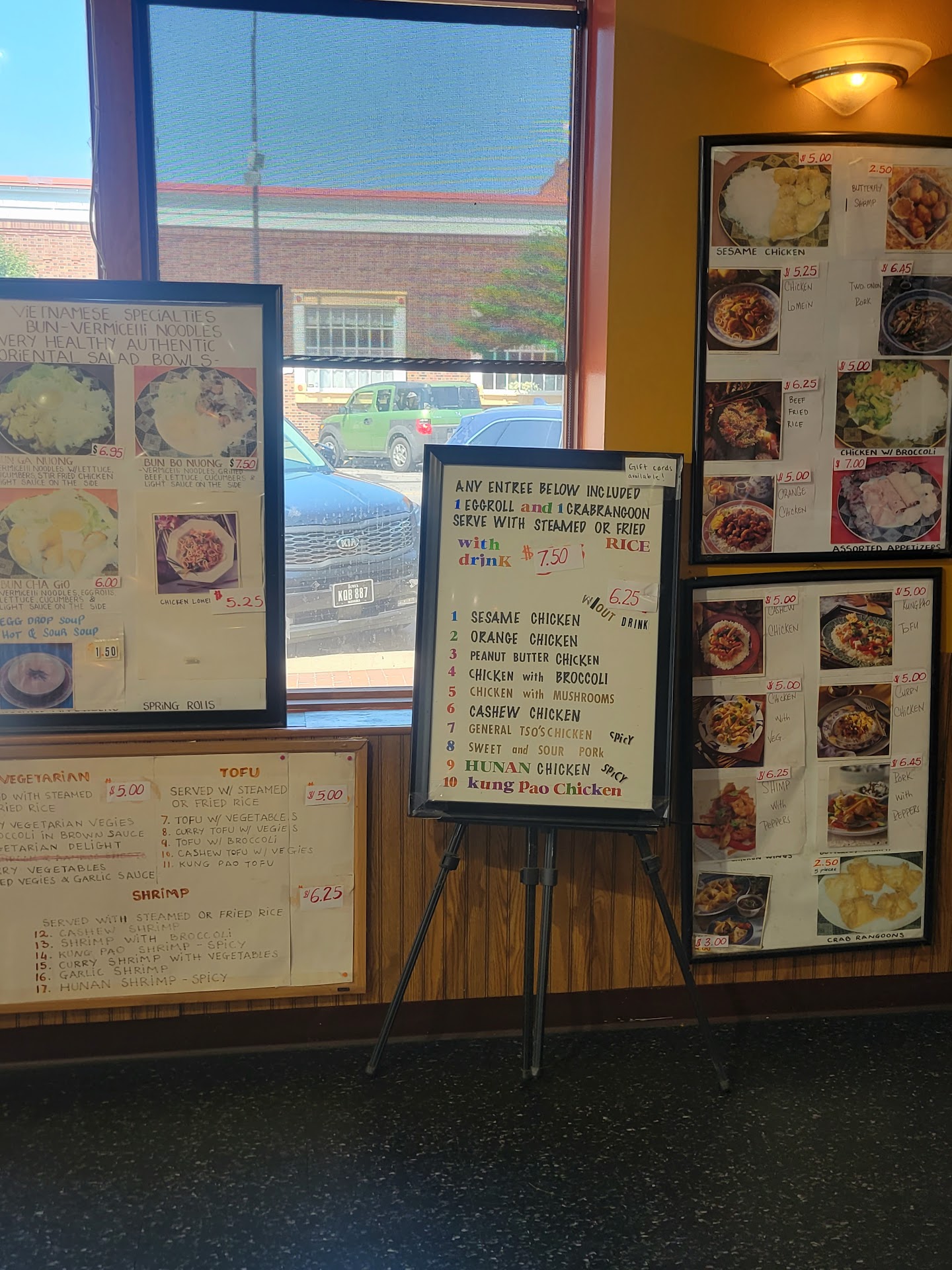Read moreThe restaurant was very dirty. The floor, tables, and chairs were sticky. Even the TV was visibly dirty. It took 10 minutes for anyone to come up front to take our order. The staff was not at all welcoming. They had actually brought our food to the table and plopped it down without a word and walked away as I was saying thank you. Other customers came in to order and started at us eating like we were aliens. It was really an odd experience. I felt like I needed a shower and a penicillin shot after eating here. Thankfully, the food was hot and fresh but wasn't the best Chinese food I've had. It was also very inexpensive. We spent about $6 per person...