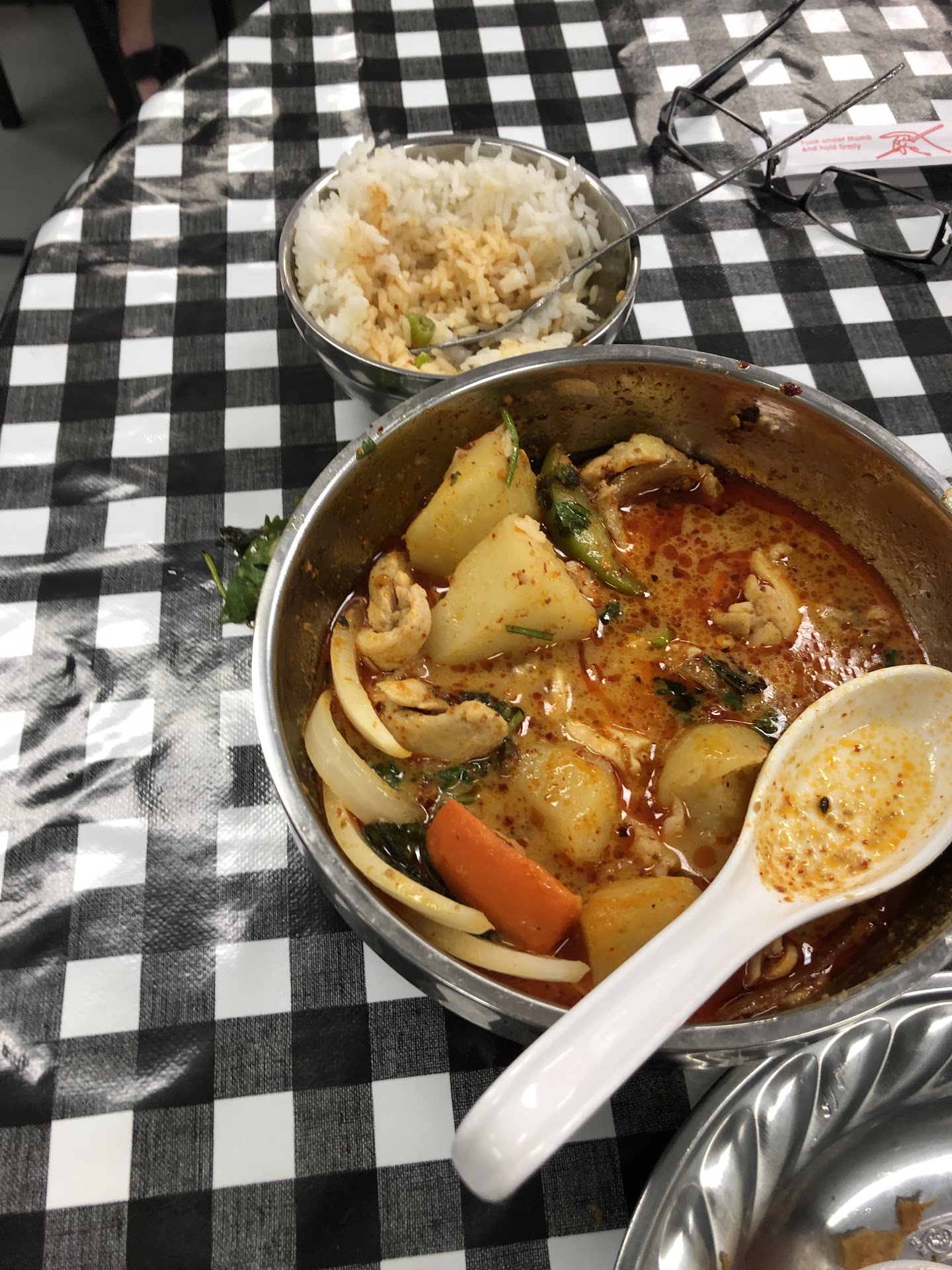 This spot has a limited menu (lots of items, don't worry, but you won't have ten pages or anything to choose from). Wife chose Pad Thai, and I got the Basil Fried Rice. We both took a Spicy level 2, seemed safe for a starter at a place we didn't know.