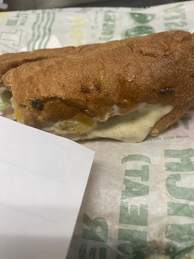 Food & Preparation Only three bread options were available (including flatbread), and my sandwich cooled off by the time it was fully assembled after toasting. The sweet onion sauce ran low during my order and had to be refilled, which took some extra time. The flatbread was tricky to handle, which made it difficult for the employee to fold and cut neatly. Wrapping the sandwiches also seemed to be a challenge, and they weren’t placed in a bag, which made them hard to carry out. Unfortunately, this gave a few flies the opportunity to land on my food while I was waiting.