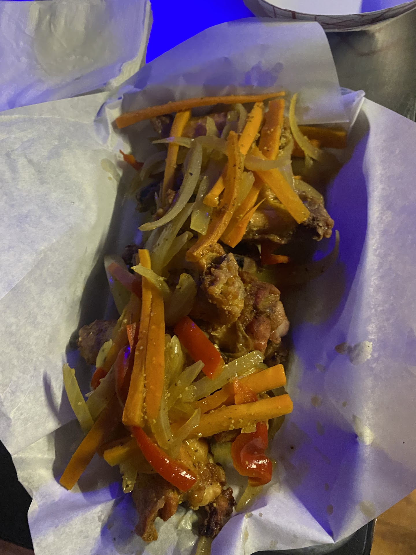 Their menu has lots of offerings from Caribbean light bites which are reasonably priced, to mid-range entrees and dishes. Chicken, beef, and seafood options available. I enjoyed calamari and the grand pepper shrimp. The dj came in around 11 and was playing good reggae and soca music for the late night crowd. The place is family friendly til 11 and dress code is casual. Security is tight which made me feel good for l as late night partying. Late night crowd age group seemed to be 20s-30s. Late night attire is club/ grown and sexy. Attractive staff also noted, the men and the women were good for the eyes.