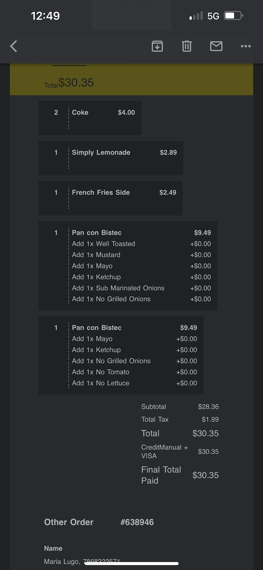 Ā Ā Ā Read moreYou can tell this is a family owned restaurant. The ambiance is so friendly, it's like visiting with your abuela. There are family pictures on the wall, the smell of cooking wafting from the kitchen every time the door opens. As you wait in line to order,you're standing in front of the mouth watering pastelitos, just arms length away. Place the order, sit down and the food is brought to the table. We ordered pan con tortilla, which was the size of the 12" plate! Fresh ingredients, awesome. It came with potatoes that were melt in your mouth soft. The rice bowl, another scrumptious dish serves with your choice of protein, (chicken,this time) rice, pico, cotija cheese, maduro cubes all served in a giant bowl. Finally, just a plain scrambled egg breakfast platter that was everything but plain. I broke down and ended up getting a sampling of all the pastelitos in the display and a to go bowl!!! Every time we come back home, we try to find a hidden gem. Colada Cuban Cafe is definitely a gem that deserves to be lauded! Keep up the excellent work,...