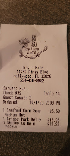 Read moreAnyone saying this is best Chinese in the area knows nothing about Chinese food or they work for restaurant with a fake review. Dragon Gate I once knew and loved is gone. update review July 2023 I decided to give this place another try and nothing has changed. I was there in the afternoon wanted to do a take out. The owners don't believe in air conditioning, girl and guy working behind the desk was stressed out and hot. Guests made some comments why is it so hot in here they must be cutting back on the AC. This time I ordered the orange chicken and fried rice. Orange chicken was so thick and not crispy and not cooked the right way and the same with the fried rice if you call it fried rice. The photo looks good and the food is not good at all. Egg Roll had a change and turned into a spring roll. Owners think the public is stupid not knowing how it should be cooked and presented. Dragon Gate for many years was very close to new york style Chinese not anymore. They sold the business and must of got rid of the chef because the food now is just horrible. Dragon Gate has now beaten Panda Express for the worst Chinese food in Pembroke Pines. Warning this place has gone down sorry to say things are not looking good for this place it changed since covid. I ordered the orange beef and it was soaking in a ton of liquid which left the beef soggy it lost its crispiness. Pork fried rice had no taste and everything was cold including the wonton soup. I have been long time customer of this place for over 20 years and have not been there since 2019. It got really bad I was ripped off of my $32.00. This area is in desperate need of great Chinese food. Most of the people here saying the food is great can't tell the difference between lo mein and chow mein. Older customers past away and the new generation knows nothing about good food that's why these horrible places stay...