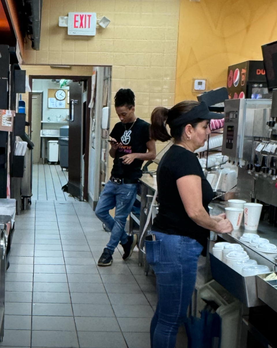 The other employee was super sweet…she saw me waiting and quickly informed me that she was making fresh coffee. Very good service. The other employee remained by the register looking at his phone.