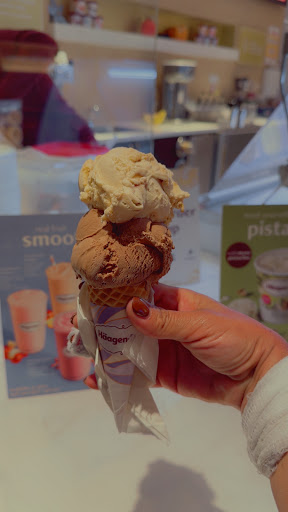 I just spent $10 +tip for a one ice cream scoop waffle cone. When I walked in the place was a mess. The wash rooms were in disarray. Toilet & Paper napkins were everywhere on the floor. The tables and furniture were sticky from god knows what. A large industrial bottle of soap adorned the edge of the sink in the washroom that was open. One of the two washrooms was unusable. I asked for a glass of water I was told I needed to purchase a bottle of water. This ice cream establishment is EXPENSIVE. The presentation of the facility & service should match the cost, IT DOES NOT. This Haagen Dazs store is a very poor representation of a high end product. The owner has obviously forgotten about thier property or doesn't care or both. If a purveyor doesn't have respect for their customers, customers will not have respect for the facility. This causes multiple poor reviews as is prominent on this Google page. This store puts a black mark on what is otherwise an excellent brand and...