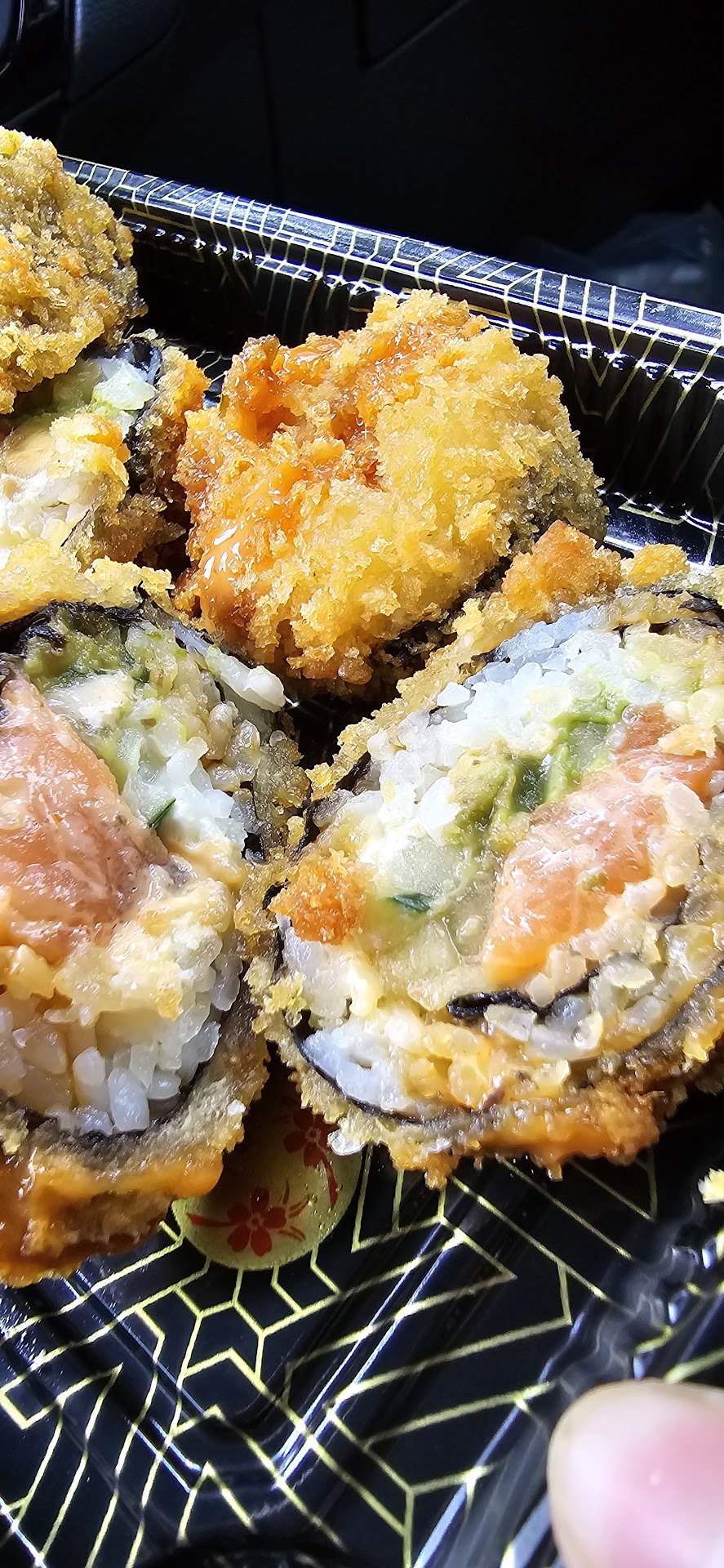 I unfortunately don't have images since everything was so good that I forgot to take pictures, but I did take some sushi with me so I attached the picture. The sushi was very fresh and well prepared. We got a Crunchy Salmon Roll, Dragon Roll, and a Shrimp Tempura Roll.