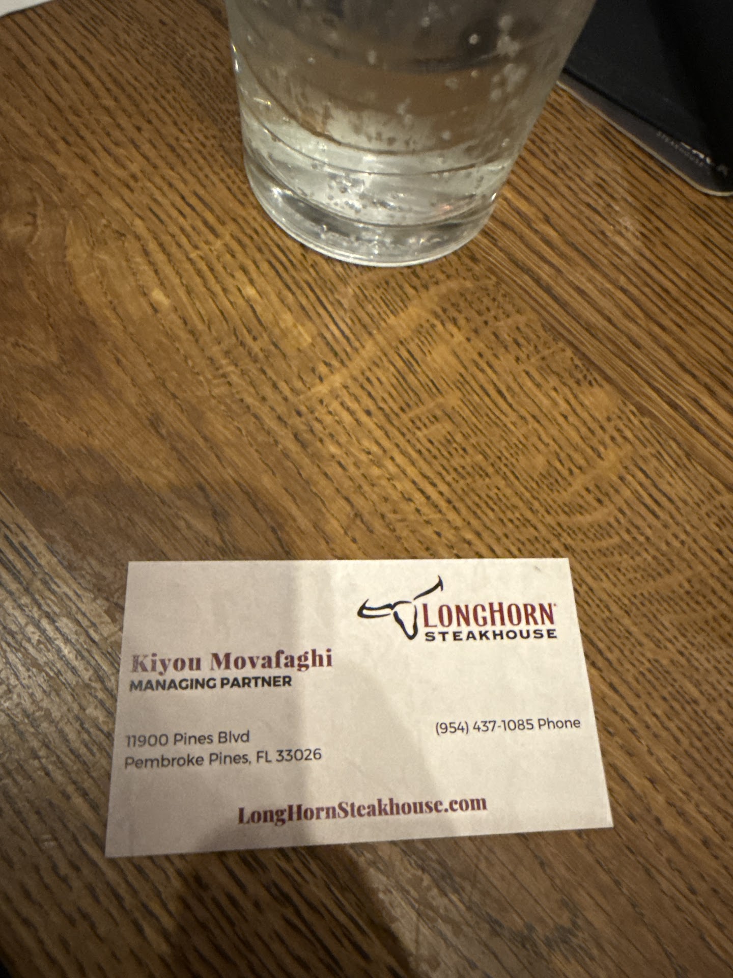I arrived hungry at 3:40pm. Oh! I was looking forward to the famous OutLaw Ribeye bone in; now priced at $30. I was seated; the server was a very pleasant. How do you want your steak? I replied middle-well. After about 25 mins; the steak arrived charcoaled, thin, tough to chew and overcooked. She took it back; the manager comes; apologized and said; I want to make you happy. I concurred. He took my order and about 20 mins later the 2nd Out Law steak arrived. The server waits until I cut it; it’s bleeding rare. She takes it back; after another 25 mins the manager brings out the next 3rd Out Law steak and he is now unpleasant and seems annoyed that his chef messed up two $30.00 steaks and that I would not accept it. With an unpleasant demeanor he wants to sit with me until I cut it. Now he’s rude and unpleasant with the audacity to turn his annoyed demeanor toward me. How dare you want your steak your way. The 3rd Out Law ribeye steak is middle rare, but a much better cut, they take it back and sear it a little more. It’s now mid-well and quite tasty. The sweet potato was charcoal burned, awful and not eatable. I just showed it to the server. The manager forgot the customer is paying $30. for a steak; so get it right the first time. That’s all. After being seated; I waited approximately 90 mins until I received an acceptable Out Law Rib Eye bone in Steak. After about 2 1/2 hours later; I left somewhat satisfied with the Steak.