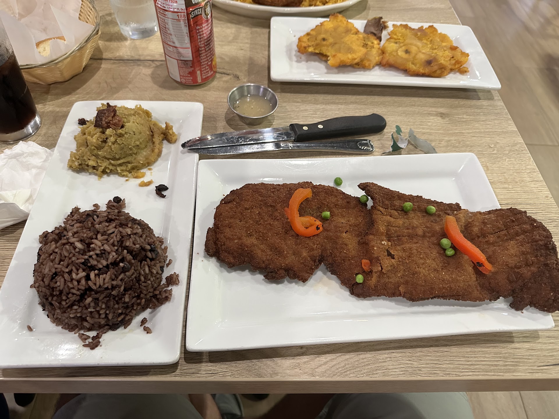 Man, I don’t know where to start. I see these great reviews on here and makes me think I’m crazy. Loved how clean and modern the restaurant was and how nice and attentive the staff was. Unfortunately, the food was as close to awful as you can get. I had the Bistec enpanizado and it was really over cooked, not to mention there was barely any steak inside. The beef was just about as thick as a slice of ham. It was all breading. My two sides were moró and Fufu de plátano. The moro was full of “raspa” and I don’t typically mind some raspa but nearly the entire rice was raspa and tasted stale and old as if, it were from the previous day. The fufu de plátano was probably the best thing I had. It was very good and flavorful.