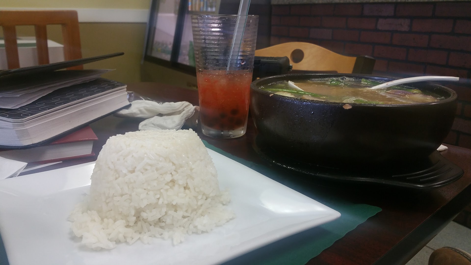I think my dish was the most delicious because it was well-seasoned with a creamy rich sauce. It reminded me of a non-fried version of country-fried steak and gravy. All dishes were served with plain, white rice (not Jasmine rice). My sister’s dish tasted okay. It did not have enough sauce for my liking. The oxtail was tender but did have a good amount of cartilage and gristle. The peanut-sauce was savory with some fresh string beans. I’m used to Jamaican style ox-tail so this was a little plain for my taste.
