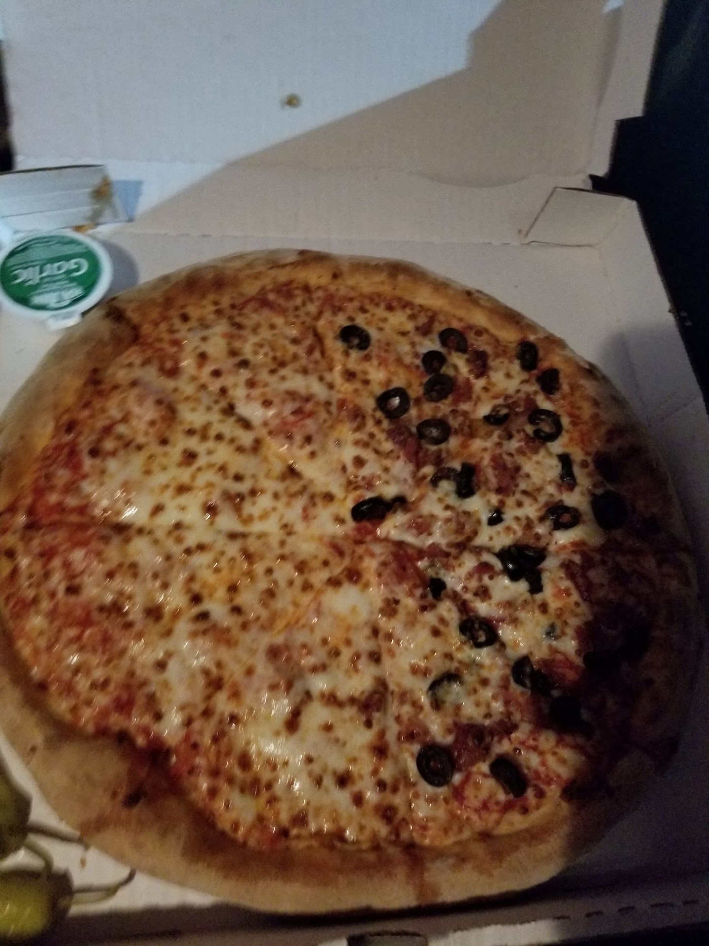 The pizza itself did not have anywhere near the ingredients that they usually have, it was lacking cheese and meats on it. I purchased "the meats" pizza and it was more like a pizza sauce pizza with a small crumb of meatball on it each slice, and a island of cheese...