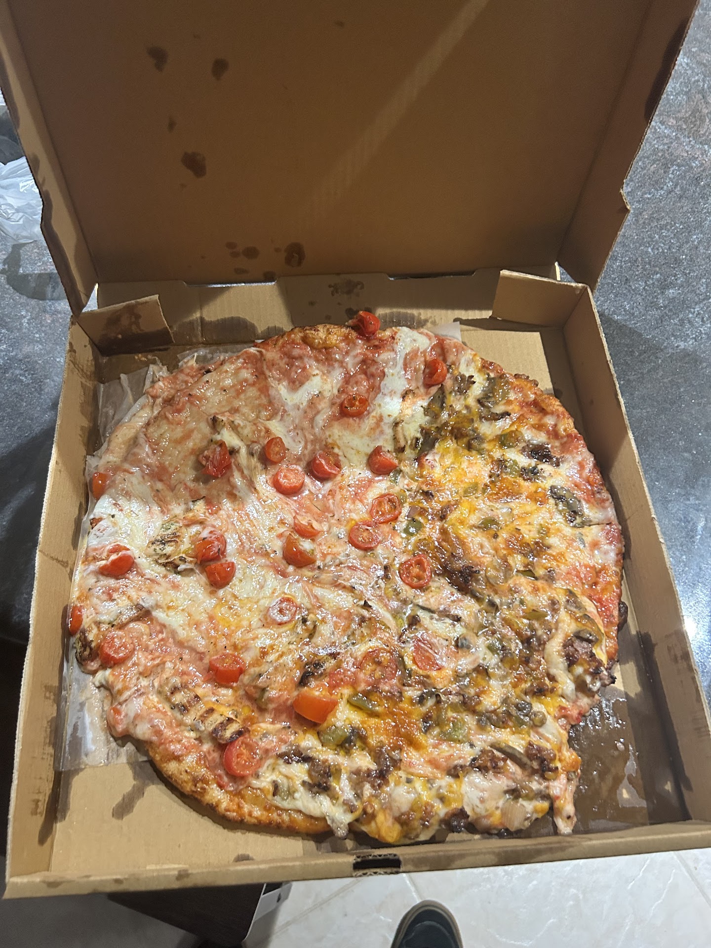 This place is a huge disappointment. Pizza Machine had a great product, piping hot, loaded with toppings, tons of cheese. Based on that, I ordered a large cheese pizza, with bacon and garlic toppings plus a side of garlic bread and garlic butter. The chipper attendant on the phone excitedly took the order and said I would have it in approximately 45 minutes. In about 20 minutes it was delivered. Bad sign. Lukewarm, hardly any bacon or garlic. Garlic bread was almost uncooked. My guess is that it was sitting on a shelf and the manager on duty decided to ship it out to me which explains the speed with which it was delivered. I tipped the driver $4 because it was not his fault that management was so stingy with its toppings and had no pride in the product. I could hardly believe it was Pizza Machine. The next day I decided to inspect the box in which the pie was delivered. And was not surprised to find that the box was of a generic brand, not a Pizza Machine branded box. I suppose management decided that it would cut costs to get generic boxes instead of the brand boxes. I will never patronize this...