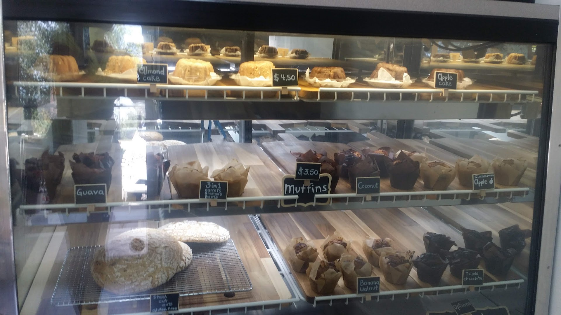 My husband and I were running errands this morning and saw the small banner on Pines Blvd. announcing that this bakery was now open (they have literally been open a week and a half), so we decided to give it a try. We each ordered a latte (hubby had a double), shared a piece of carmelized onion quiche, and my husband had a pecan muffin. Everything was so delicious! After a nice chat with the owner/baker Max, we bought a loaf of sourdough bread and a piece of almond cake for later (the almond cake recipe has been in his family for a century!). The sourdough had a perfect thick crust and soft center and the almond cake (a small Bundt cake drizzled with icing) was moist, flavorful, and slightly sweet. Amazing! Max does not cut corners. He doesn't buy almond flour for his cake; he grinds the almonds himself because he understands that every step in the process of creating food is critical to the outcome. He has gluten free items and bread as well as a variety of muffins, vegan options, and other treats. Everything is made simply with quality ingredients and like I said before, passion. Please go out and support that in our neighborhood; we need more local artisans and restaurants like this...