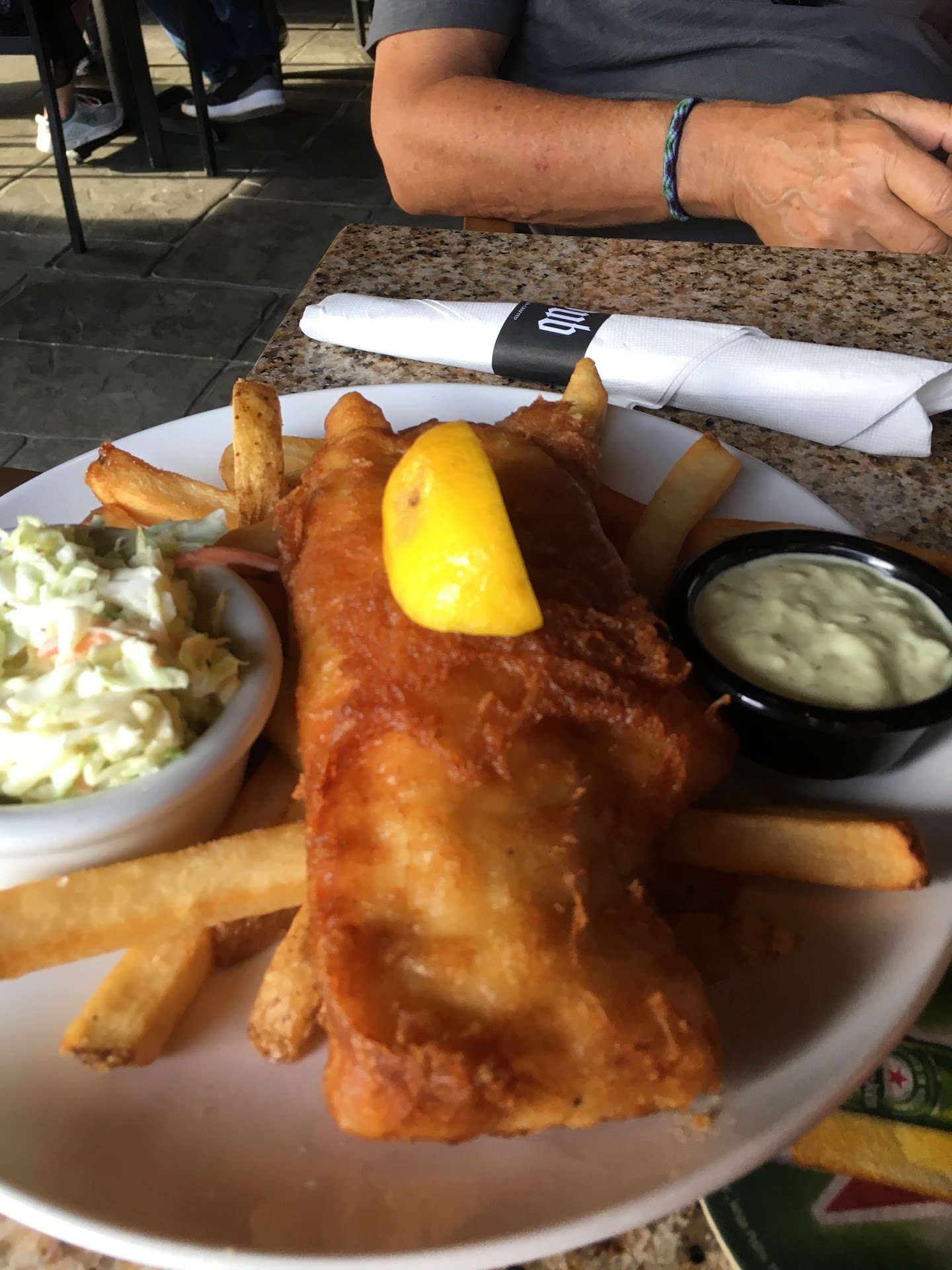 Read moreThis was our first time at the Pub and as you walk in, it's like a real Irish Pub the look, the feel and the food is great, but I am giving this place 3 stars because of the service. First off we were seated and no one came by for about 10 mins, finally the manager ce by and asked us of anyone had been by and we said no, he immediately came and took our drink and appetizer order. He was very nice and recommend several items and explained what apps were hot vs cold - Which was greatly appreciated. He then told another waitress to tell our server to come take care of us while he ran to another table to do the same. Our waiter finally shows up and is cool as a cucumber nice but carefree, we placed our order and my husband ordered a beer and we didn't see him again for a while and when we did he asked my husband if he had ordered something to drink cause he forgot. Hubby told him he had ordered a beer and told him what kind. Beer finally comes. Food comes by way of another server and the food is delish. I had the fish and chips, hubby had the Belhaven Burger. My fish was mostly breading so of the piece of fish presented 25% was empty breading but when I finally got to the fish, it was amazing - soft, flaky and tasty. Hubbys burger was undercooked but delicious in parts that were at the proper temp. Hubby had the gouda mac as a side and it was good & the perfect size. The chips w my fish were also good as was the tartar sauce. Unfortunately I needed more tartar and since our waiter was MIA, I was left longing for more. He finally showed up for me to ask him for more but by the time he brought it I was already over it and my food was cold so I didn't eat the rest.