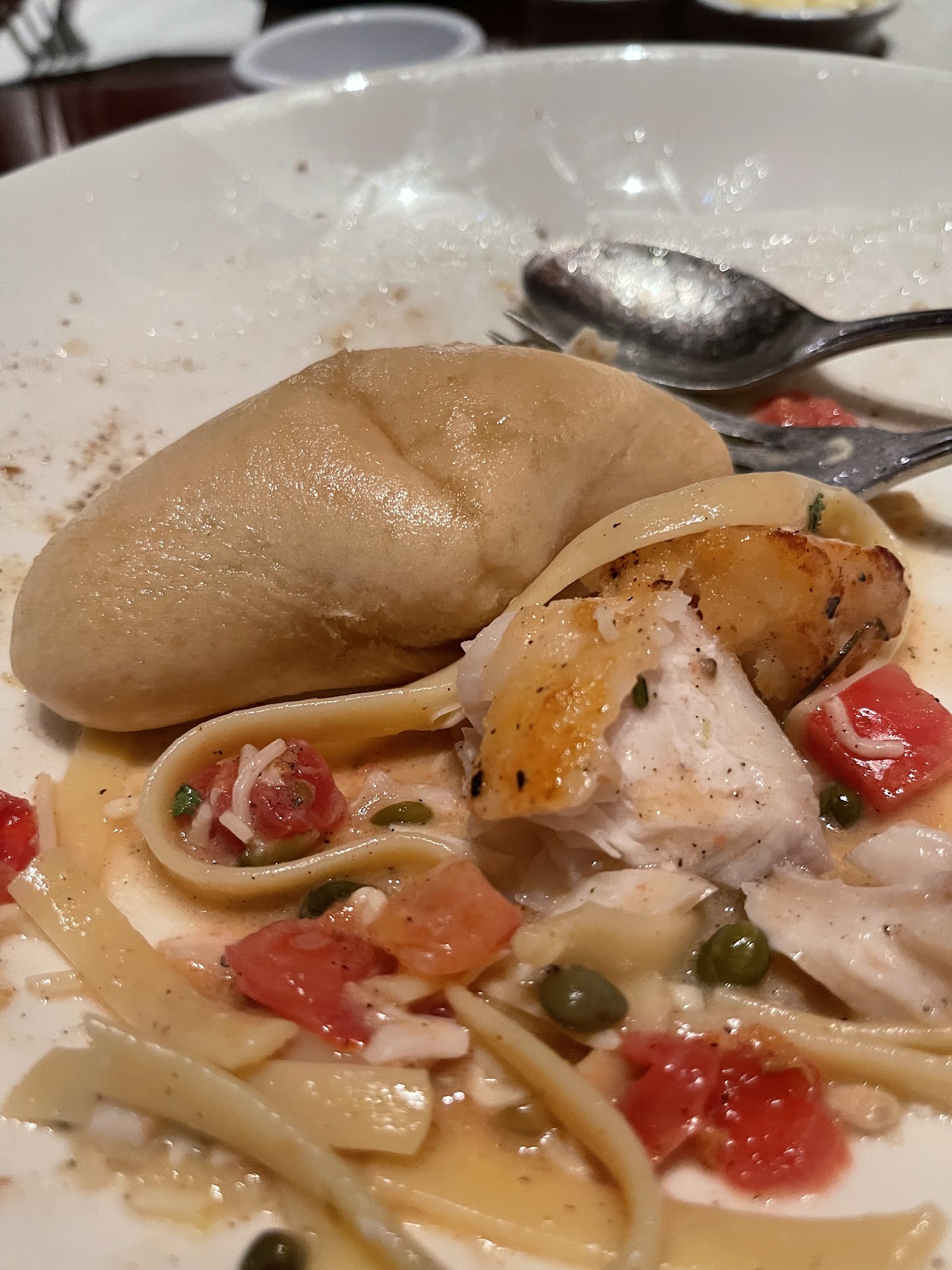 We were early for our reservation and they happily seated us right away. My husband and I enjoyed the atmosphere, we were seated at a table in a small section with only about 5 tables, and directly in front of a lovely tall fireplace.