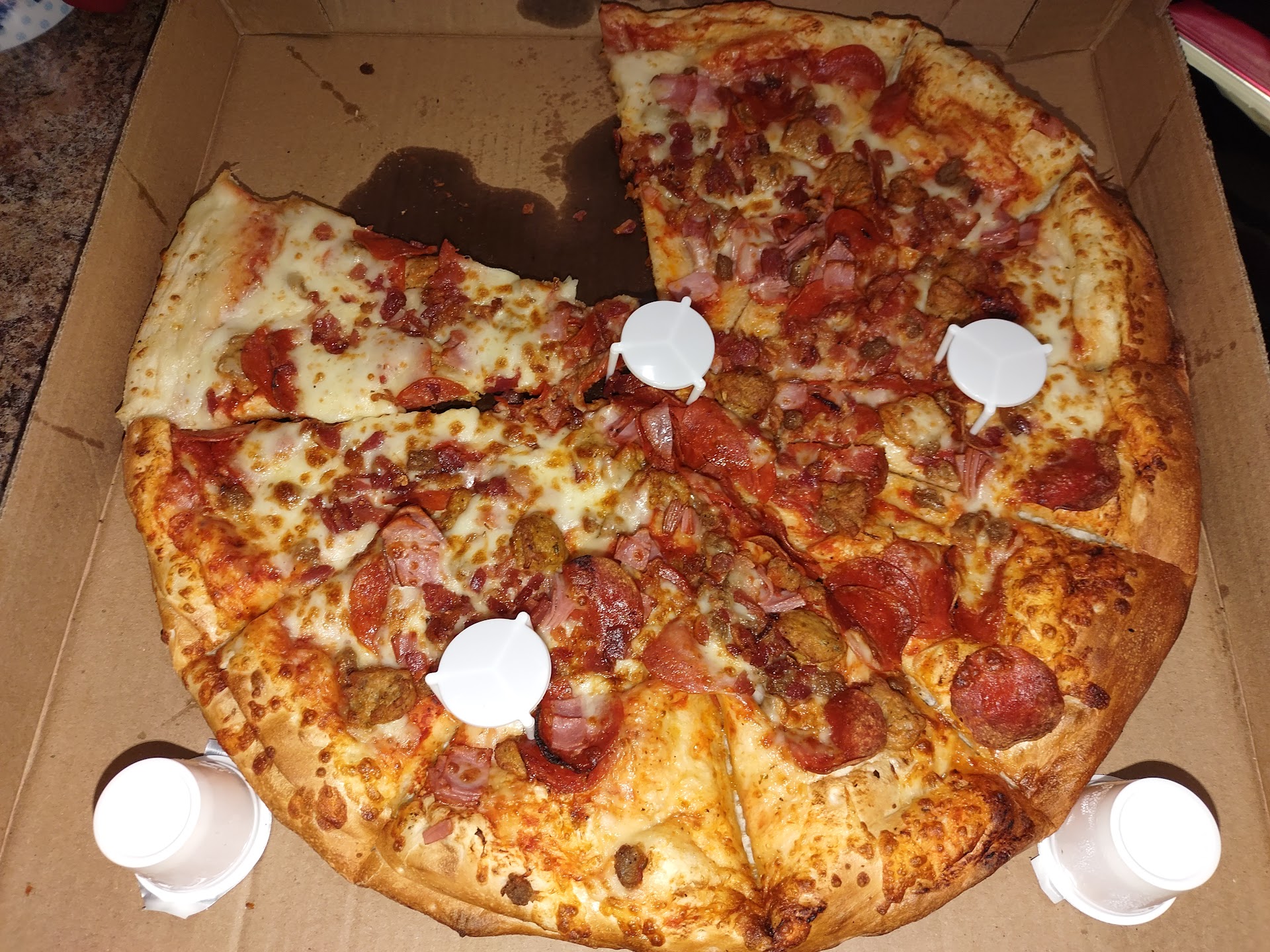 I place an order at 9:18pm tonight for two XL pizzas totaling over $50 worth. I then received a call from stoners telling me they messed one of our pizzas up and asked if it would be okay if they sent the messed up one at 9:31. I gave them some grace and told them that it was fine and to just send it. We them waited 40 more minutes… still no pizza. I called back at 10:12 and i was told it was on the way. I called back at 10:54 and no answer… they were still open. Our pizzas were delivered at 11:18 pm, 18 minutes after they closed. The driver informed us that the manager decided it would be a good idea to send home all the other drivers and make him be responsible of delivering solely for the rest of the night. Again, we had grace over the situation…until we opened the boxes and our pizzas were DESTROYED! This isn’t the first time we have had an issue but will definitely be our last. Absolutely disgusting management and sloppy service.