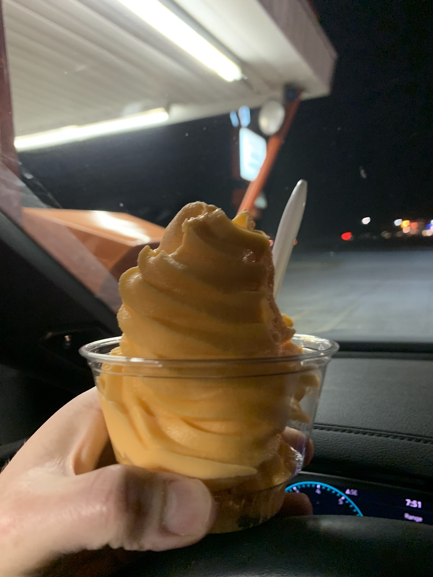 What you need to know: Pictured is a “large” Tangerine Soft Serve in a cup. This is the smallest acceptable size if you love yourself. I did have a lil taste before taking this picture, my apologies. Drive through is faster than you expect, even if you order food. They do take Visa & Mastercard, though you’ll have to order at least two Tangerine Soft Serves to get to the $5 minimum. This is not a problem, and you don’t even need to pretend that you’re taking the other one to someone who isn’t with you. You’re allowed to get as much as you want, just for yourself. The building is painted with a tangerine orange accent color and I appreciate the continuity of the theme, giving me the full Tangerine Experience.