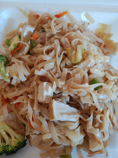My husband and daughter ordered Pad Thai...as they always do. I ordered the Cambodian street noodles, with rice pasta swapped in as apparently the yellow noodles are gluten. I wanted something more authentic and unique as this was an ethnic food spot. The photo and description sounded very appealing. The reality was I saw four very small slices of zuchini in my pile of noodles with tofu. I found two broccoli florrets...just two and they were about one to one and a half inches in diameter...not especially large to make up for only two. There was a decent amount of tofu...just very, very little veg and veg is why I ordered this dish. The other ding is I have no idea what sauce was used but I suspect salt water or the like as the only flavor I could taste was salt. It was extremely salty. Even my kid, who can handle a lot more salt, said the Pad Thai was a bit salty as well.