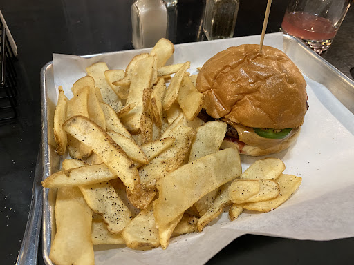 I was surprised there was no whiskey on the menu, given the multitudes of whiskey bottle lights, but they did have a good cider. My all time favorite and go-to cider is Angry Orchard unfiltered. This was not as good, as it was sweeter and less mouthy, but probably better suited to appeal to many cider drinkers.