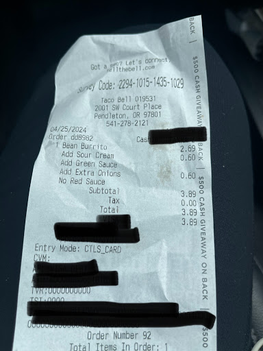 Read moreTaco bell is my absolute favorite fast food place to eat at and always has been. Unfortunately I don't get to eat there very often and sadly that is by choice. I choose to not eat at Taco Bell unless I am not in Hermiston and it is a whole different Taco Bell. Ever since the Taco Bell here finished their remodel the service at the restaurant has DRASTICALLY DECLINED. Before the remodel the business had a pretty awesome crew working and the employee's were pretty efficient at their job. The night crew had an especially awesome man who worked there. I have no idea what happened to any of the employee's who worked at Taco Bell before the remodel. I wish they would bring back those employee's because the people that work there now are completely inefficient at their job. It takes 15 minutes on a good day to get your food after you have ordered and paid. Although the usual wait time though is 20-30 minutes and that is absolutely no joke. A lot of the time the employee's have messed up or forgot some part of your order. One does not want to have the mistake or forgotten item or items fixed because you have already waited so long for your order. The drive through always has a long line and it to takes FOREVER to get through. Inside you see the employee's working, half hearted. They are slow and the looks on their faces is usually confused. They have zero urgency and seemingly zero desire to have satisfied customer's. I really have no idea what happened after or during the remodel but I honestly wish they kept the old look with the former employee's because now I never want to eat at the place I used to always...