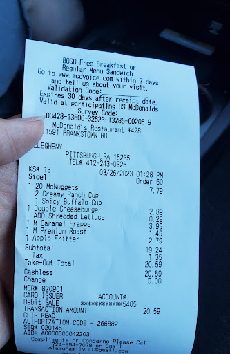 Read moreWas a little disappointed with McDonald's I would have to say and Penn Hills right across from Duff Road it took me 7 minutes to get a cheeseburger and french fries and I was the only one in the restaurant it was about 2:30 in the afternoon. I asked the young man would you please hurry up I need to catch a bus so he proceeded over to the french fries and was scraping up the little pieces of fries that have been in the bin for I don't know how long I'm like that is so unacceptable the timer on the fries were going off for seem like minutes someone finally went over there and took out the fries I said you need to replace those fries with the good ones that just came out of the fryer he looked at me like I was a stupid idiot. And then I asked for ranch dressing and he said no you have to pay for it I said since when do you have to pay for condiments I was very disappointed luckily I just made my bus but I would have to say that this McDonald's has the laziest crew that have ever come across at McDonald's and I absolutely...