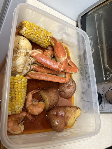 Read moreThe workers were busy but still made an effort to take our order they were polite and made sure to give me a pan and a box so I was able to take my dine in food home for leftovers. The food had flavor and it was delicious. I love seafood so I wanted to buy a lot of food but I love that it was delicious. The seasoning that I picked was garlic and crazy spice seasoning and chose it to be mild. I also ordered calamari it was cook right but the breading was plain however if you get a seafood boil with your customized seasonings and you dipped it into that, the combination is bomb. My fiance enjoyed as well. I love to add eggs to my boil but most places has the shell on the egg. This place did not and I like how the egg absorbed the flavor. My boil originally came in a bag I dumped it in a pan and I couldn't wait to eat after I was done with pictures I just couldn't stop the delicious feast, it was so good. Worth checking out if you want and if you...