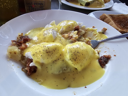 I cannot recommend this diner more highly. My husband and I frequent all the local diners a lot (we actually met in a diner) I'm pretty particular about my food, especially from a diner, there's only a few great ones around. This one is no exception honestly, we've only been here a few times and it's already my new favorite. Classic diner vibe, but this place is REALLY REALLY clean, you won't find sticky tables, crumbs on the floors, hell you can't even find fingerprints on the large glass doors. The key room for any diner is the bathroom and it's absolutely pristine, the finishing touch for me, is the fresh flowers on the vanity, it's a personal touch that I really appreciate and it shows they care. Ok, the food, the important part, it's REALLY AMAZING, like actually amazing. The pulled pork is tender and flavorful, the burgers are Flame broiled and the soup is some of the best I've had. The only thing I've had I have not liked was the open face roast beef but literally everything else has been mostly homemade, made with love and care and you're given really ample portions, especially for the price. My cup of coffee never goes empty thanks to the ABSOLUTELY INCREDIBLE WAIT STAFF! These ladies and men are some of the best I've encountered, seriously. They are genuine and pleasant, I truly feel like they care about their customers and their service, that's a rare find these days. The owner has been there every time we've been there, he cares, it's very Apparent by the quality of the food, the wonderful service and the sqeaky clean atmosphere. Which reminds me... TIPS ARE NOT OPTIONAL, if you go out to dinner and are waited on, TIP THEM, 15% is minimum... minimum. Unless they are the worst server (even then you still leave something) , they're is no excuse, these people work hard, TIP THEM!. I cannot believe how many people think it's acceptable not to tip. This is always been the standard, nothing has changed except people thinking it's suddenly optional. With that said, I cannot recommend East Penn more highly, you'll receive amazing service, an excellent meal at a great price and the dessert is...
