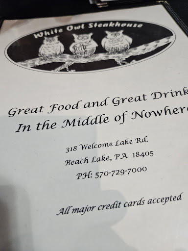 Read moreMy family and I recently went to the White Owl for dinner. I have been once before and was happy to have the chance to go back. I had the schnitzel, my husband had the Pork Mignon, and my kids had the chicken wings. I love that the menu is varied enough to accommodate our tastes. And the food was delicious, we all enjoyed our meals. Our server, Miranda, was a doll. I felt a little bad because we were asking her so many questions, but she answered all of them and made some great suggestions, and stated she didn't mind all the questions because she wanted us to be happy with our meals. So sweet! I didn't give 5 stars for the atmosphere because I don't think it matched the quality of the food. The space is split between a bar and dining room. I liked that, because I never enjoy going somewhere for a dinner and being seated near the bar. So that was good, but the dining room needs a little updating. There is a large cooler against the wall labeled "Desserts" but it was empty. Either fill it or move it out of site. And there was a bar behind me and I wasn't sure why it was there, maybe for the staff to prep dishes? It seemed out of place. And the lights over the bar didn't have any shade over them so if you were facing the bar, you had a view of about 4 or 5 bright bulbs. I think the place has so much potential. The food is great. Put a little more thought into the decor and vibe of the dining room and you may just get some of the families who stay at Woodloch to come...