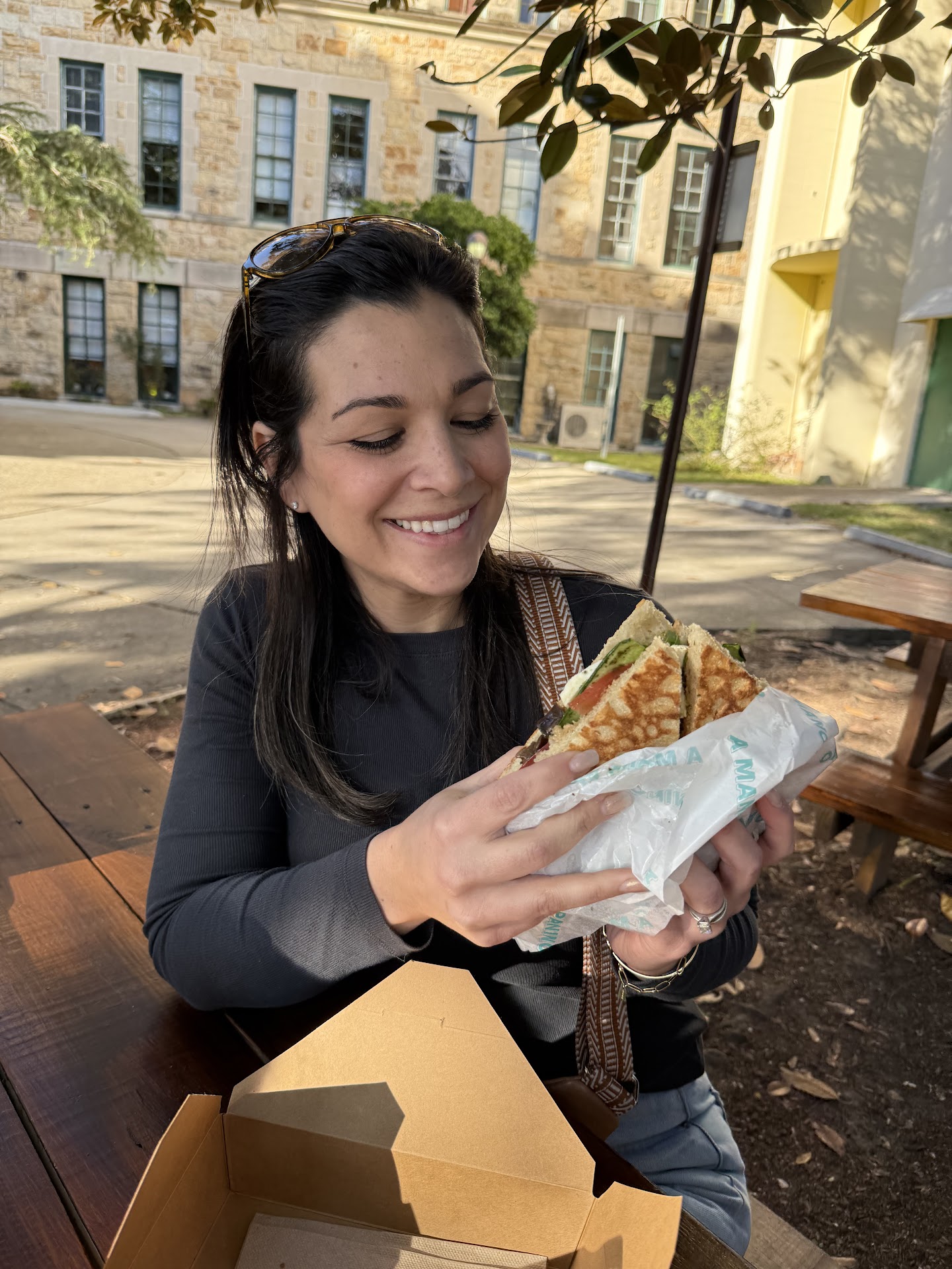 Atmosphere: The seating area is in an outdoor courtyard area in front of the restaurant with small QR codes placed on each table (the coolest part of that the codes have magnets that keep them connected to the table)! Service: The day I went, there was one person serving guests, and she did a great job of bringing out the food quickly to everyone. Menu items: I got the Il Trovatore sandwich, and it was absolutely amazing. The sauce was my favorite part!