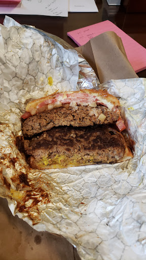 Today was the first time I'd gotten a double. It was the first time I'd seen a double on the menu. The double was too much meat. It was good and all, but too much for me. I'll stick with the regular size. I also saw that you could get it with bbq sauce. I'm not sure what I think about that.