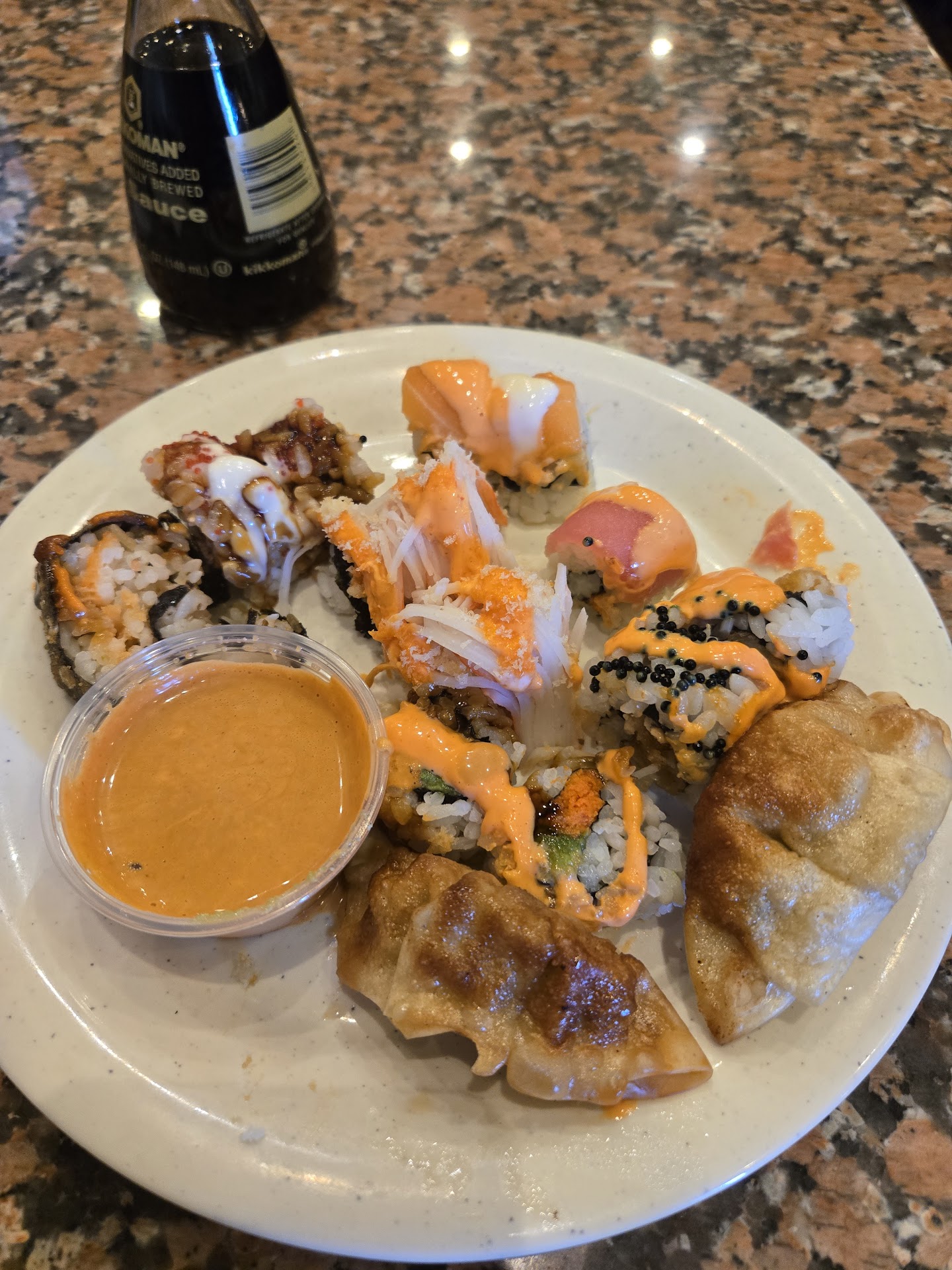 The food is obviously the best part. They have some sushi (even though it's buffet sushi it's not bad), your typical food like general Tso's, sesame, honey, and bourbon chicken, beef and broccoli, cream cheese wontons, etc. They have an American style side which has rolls, pizza, meatloaf, and other things along those lines. They even have a salad bar and dessert bar. I usually go for the more "traditional" Chinese buffet style food, and I think it tastes great when I do. The fried rice has been some of the better buffet fried rice I've had, though it can be hit or miss sometimes.