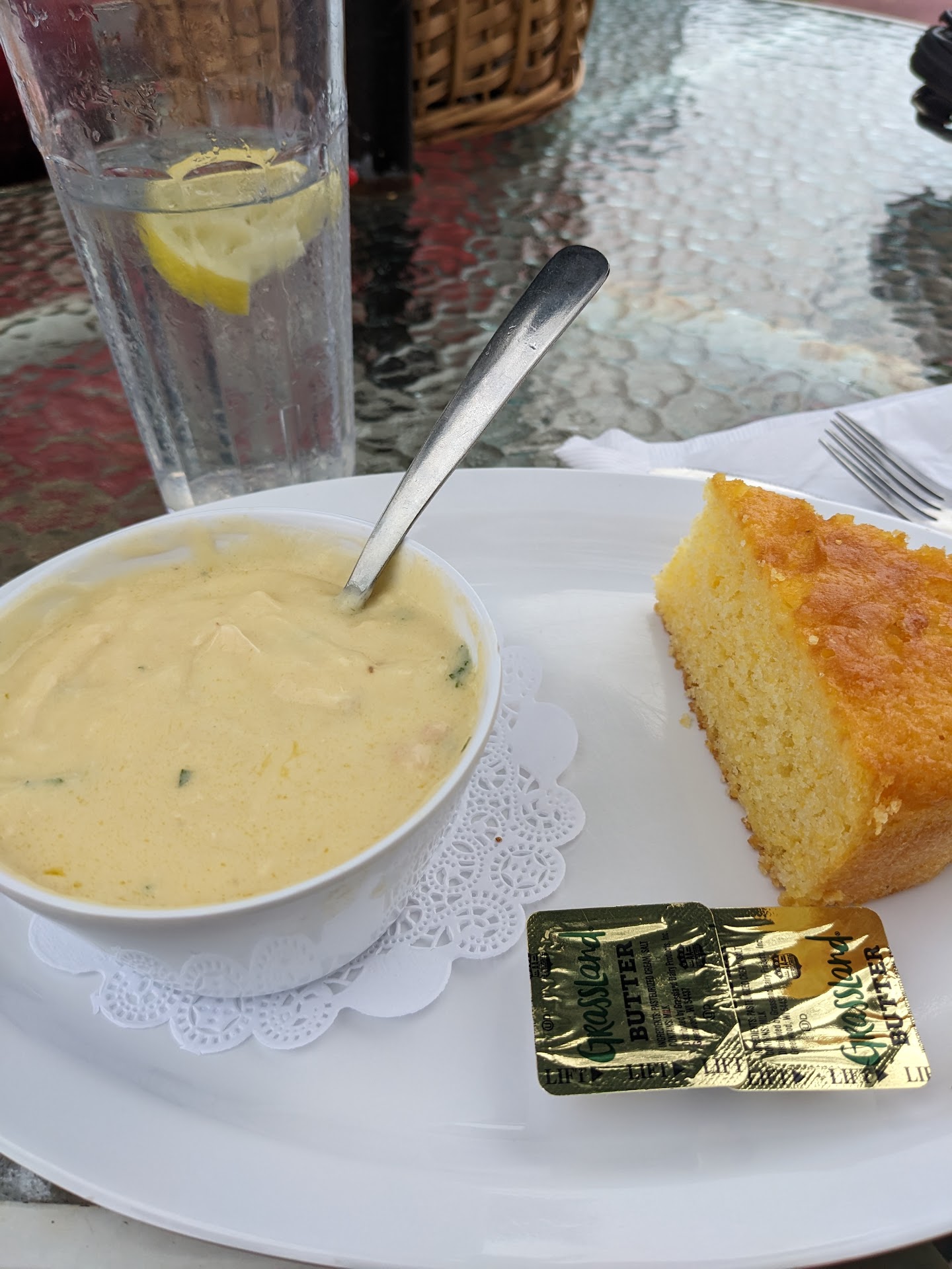 Read moreWent here for first time today- SO good!💓 They just started their soup and chili season and me and my friend had a bowl of chili for her and I had the creamy lemon chicken soup. It was velvety and delicious! & Served with cornbread! Also their strawberry lemonade was huge and delicious!. We each got a different bread pudding for dessert and I for sure wouldn't miss that! I had the peach melba bread pudding! Perfect 💓 will be back! Very cozy and adorable inside and lots of outdoor seating too! Our service was quick...
