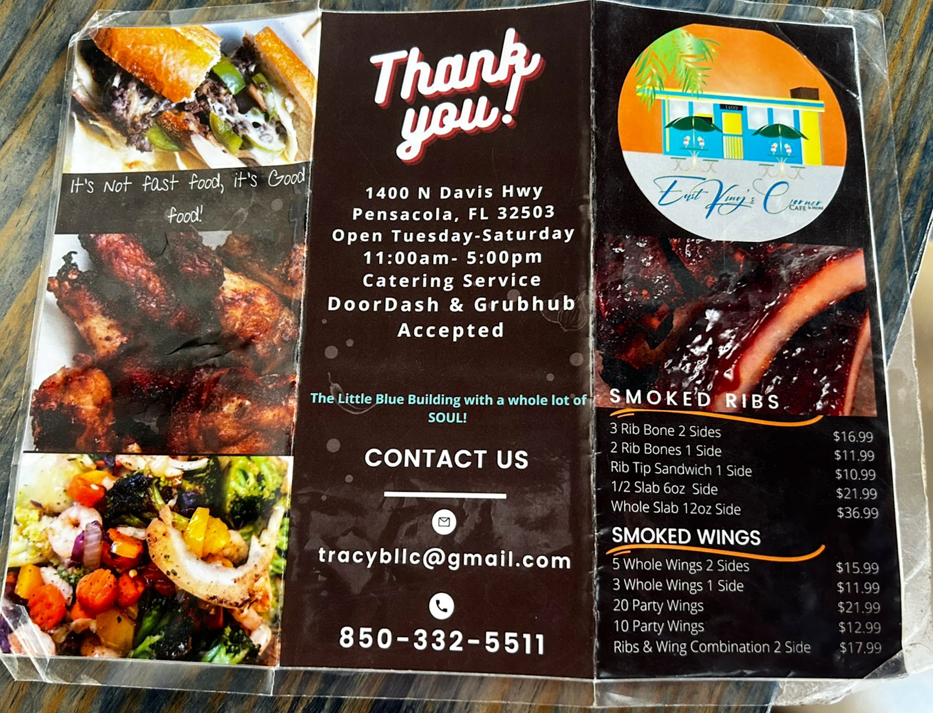 Dont be thrown off by the looks of the building, in this case 1st impressions are irrelevant. Ive heard a few people rave about this place so I finally gave it a try. Omg! The food was finger lickin good! As I watched another order come out, I wanted to keep adding food to my list. I ordered a beef macho taco, shrimp tacos and a shrimp pro bowl. The service is just as good as the food! Server is friendly, funny and knowledgeable about their menu and food. Meal is made to order with fresh ingredients. They have a few outdoor tables you can eat at, while raving with the other food patrons about how good their meal is. Was invited to sit at a table with a cool guy and his daughter having lunch and had great conversations about Pensacola. If you are looking for a laid back outdoor atmosphere with good food, make a stop here! Dont let the sky blue building fool you.Theres also a snowball food...