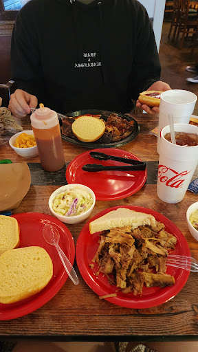 Read moreTo start out with if I could give this place 6 stars I would. It is hands down the best place for BBQ in Pensacola. The building itself is small with only two rooms for dining. The walls are decorated with randome signs and pictures about Pensacola. Me and my wife ordered and received our food in about 10 mins. Our server was very good and attentive despite having several other tables to wait on. Now onto the food. The food is served on a plastic plate with the sides in plastic to-go containers. This serves two purposes: one it is cheep and fast to replace and serve, the second is that all you have to do is just put a lid on it and voila instant to-go containers. As you can see I got the ribs with Mac and cheese and baked beans. The beans were some of the best I have ever tasted. The ribs really were as big as my hand! I have never had ribs that good. No one can match them for taste. The rub is cooked so long the meat actually absorbed the flavor. It was tender and sweet. My wife got the brisket and it was so tender that you can't actually use a fork on it. She also had Brunswick stew and it was also excellent. Finally no BBQ place is complete without It's sauce. The sauce is both sweet and has a kick to it. They keep it in a warmer so it comes out nice and warm. Overall they are amazing and we will be back many...