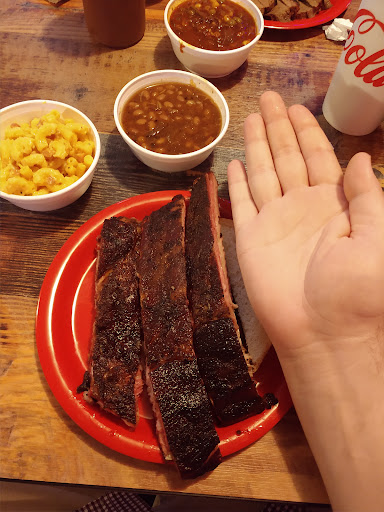 *Update: I got the sausage with the ribs this time. The ribs are still fantastic, and the sausage has a good snap to it! Someone in my party got the brisket and thought it had good flavor, so I might have gotten an end piece last visit. I also finally tried their pie. I was unable to try the Key Lime Pie. Their best flavors that I tried were the Lemon Cream and the Chocolate Brownie Pies. The lemon pie is not a strong lemon flavor, but still present. They may use a sweetener other than sugar. The Pumpkin Pie was good. I was not particularly fond of the Pecan Praline Pie. These are thick slices of pie, so you will want to save room.