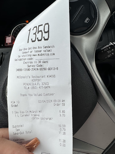 Read morePossibly the worst service at a McDonald's in this town. Walked in to the lobby to order. Immediately appeared only two people were working (one drive window, one bagging). Made eye contact several time with the employee bagging yet he never addressed that I was standing there waiting. After several more minutes, someone came from the back to chat with her two friends hanging out at the counter. She hollered in the back for someone else to came take my order then got on her personal phone and made a call still standing there behind the counter. Two more people appeared and they seemed to talk amongst themselves who would actually come take my order. Finally, order was taken. Now, my order came FAST, but there were issues still. Nugget kids meal with apple juice and ranch dipping sauce: they gave me a kids cup, not apple juice, and no ranch in the order. Chicken sandwich meal (large) with sweet tea: no sweet tea at the self serve counter so I had to flag someone to fill it in the back. The fries I was given were a medium, not a large. Fries were underwhelming (soggy and VERY salty). Dissapointing because this is is such a great location for business, but there have always been issues that have progressively gotten worse over time. Best to take your McDonald's craving up the street to the location behind the...