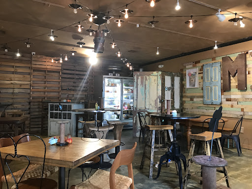 Awesome place. Went there for breakfast on Saturday around 10 am. Thankfully it wasn't packed. The restaurant is very cool and also a store. It has a rustic, eclectic feel to it, decorated with what nots and mismatched furniture. It's a seat yourself policy. We were greeted immediately after we sat down. Silverware served in metal tin with napkins. I got the traditional breakfast - bagel with cream cheese, eggs, meat, potatoes vs grits. It was so good. I got scrambled eggs, bacon, potatoes, blueberry bagel with honey almond cream cheese. I also ordered a side of grits. Everything was really good. The bagel was great, house made cream cheese. The only thing about the food, you have to add salt to the food, no big deal. Hubby got the Monte Cristo - bagel with boars head ham and honey, cheese and covered in powdered sugar, and preserves. He also got the coffee and latte. Both were strong but good. The server was very attentive and always checked on us. Once we got the check we had to walk through the store to get to the check out counter. The store was really cool, had a bunch of cool things to buy. The counter had all types of coffee choices and candy. They also had cookies, honey, olive oil and other things to buy. The hubby got the raw frosted honey which was awesome and would taste great over ice cream. Would definitely return to try other things. It has cool pottery littering the walk way. They have outside seating too.