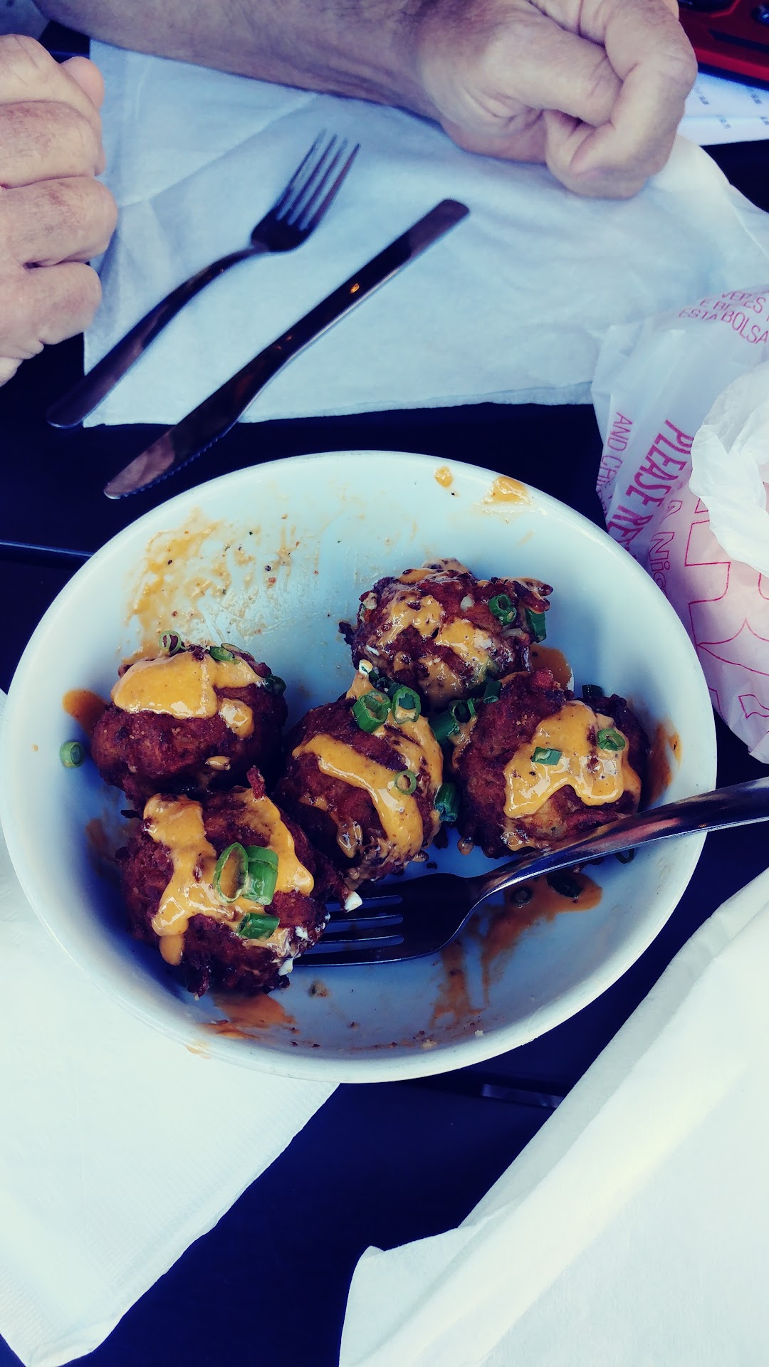 Read moreAlthough the atmosphere is okay, I cannot give negative stars for the lack of service and the food, so the average becomes one star overall. Nothing in our orders for five people was a long cook time. We arrived shortly before noon. While we waited for nearly an hour for our food, I watched singles and groups be seated, ordered, served, and leave. So you might get lucky or NOT. We watched another table of three that ordered before us sit there watching our food being delivered before their's. Both of us asked about our orders about 45 minutes in and got some BS explanation. My wife ordered the chicken and waffles. It was clearly ready long before and had been nuked before delivered. The chicken was tough, but worse, the waffle was so tough that she couldn't cut it with the plastic knife. And that's the other issue. We watched every table receive a full size thick napkin rolled around the actual stainless steel flatware. We received plastic packages with plastic forks and knives and a small thin piece of paper posing as a napkin. We were told they were out of flatware. So I got up and went to the hostess/waitress stand and got real flatware and napkins so my wife could saw the waffle, even if she couldn't chew it. If you...