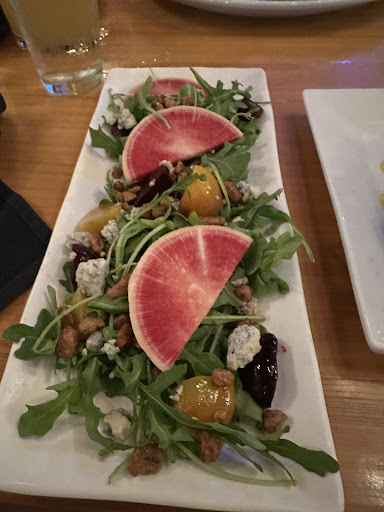 The experience here took longer than we expected, especially when they were so many empty tables. We were told the internet went down for a while, but we didn't know what that meant. It often took a long time for our server to come back to us. The server came back twice before bringing back our initial drink order. When an appetizer was delivered by another server, it was spilled onto the table. That other server picked up the food with bare hands and put it back on our plate, then walked away. 15 minutes later our server came back, and then acted appalled when I told her what happened. I was about to walk out, but as it was a Friday, I was afraid I wouldn't be able to get dinner elsewhere nearby, so I stayed. She said the manager would be notified and she took the plate back. The manager came, apologized for someone who was "new", and asked if we needed anything else. Our dinner order hadn't been taken yet (about an hour in), so he took that order. The next time our server was in the area, she asked if we were ready for dessert. We were shocked, and we told her we hadn't even had our dinner yet. She looked embarrassed and left. I did receive my appetizer, and it did not taste good anyway. .