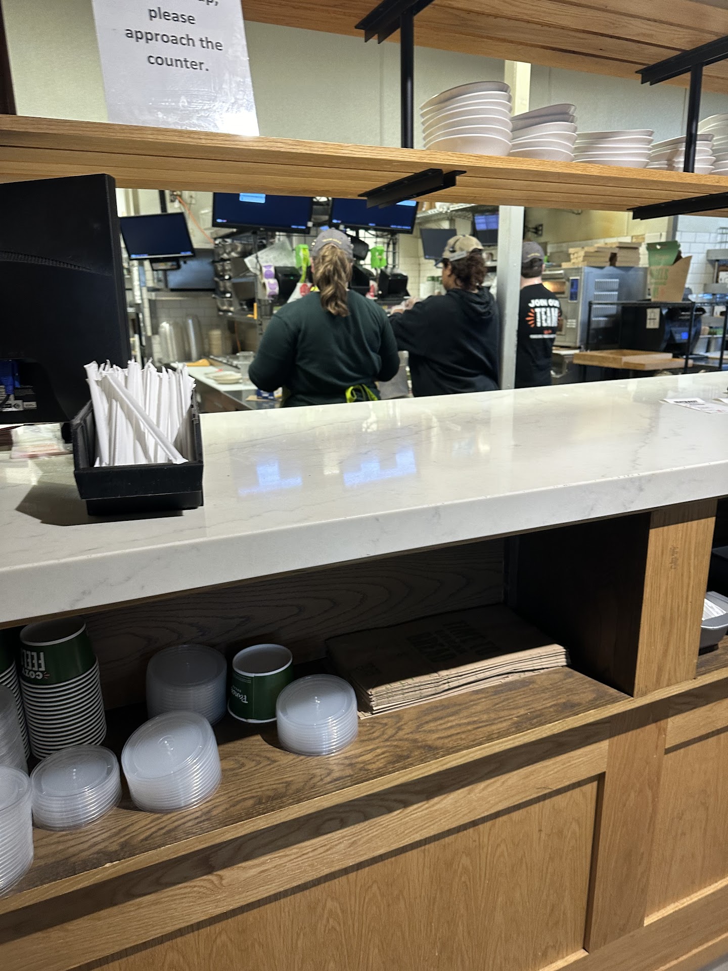 The buzzer goes off again and three workers walk past me carrying other people's meals and drinks. Not a glance at the buzzer or me. The buzzing stops and at that point I was convinced I was never getting that drink.